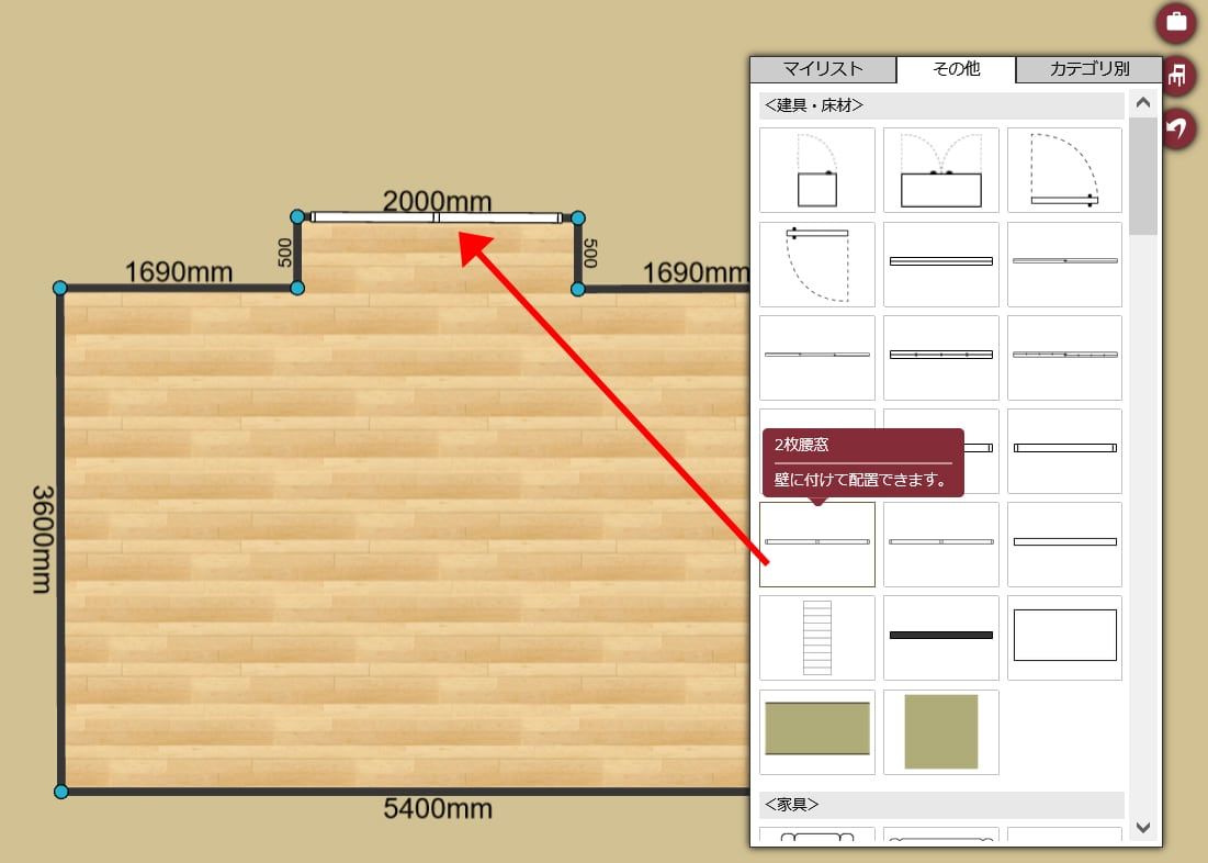 【マイルームで部屋を作成する手順③】窓やドアなどの住宅設備を配置する
