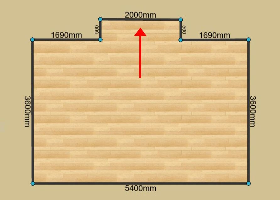 角にある基点を部屋の内側へ向かってドラッグすることで、部屋の凹みを作成することができます。