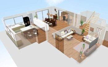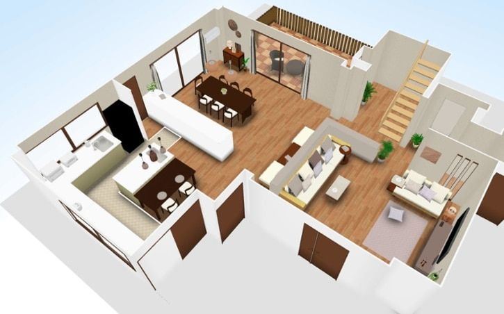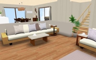 家具配置、カラーコーディネートが終わったら、3D画面で確認します。実際に室内にいるような目線から確認することが可能です。