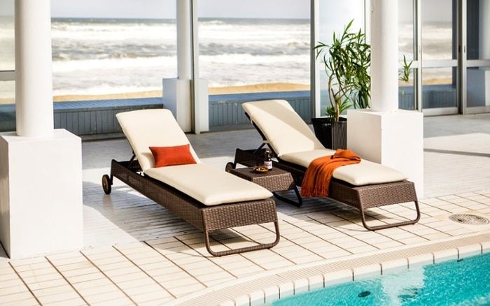 ゆったりとしたラウンジチェアは訪れる人々に心地よい寛ぎの時間を提供し、リゾートホテルの雰囲気を格上げしてくれるでしょう。