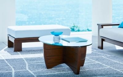 抜け感のあるガラス天板のローテーブルは透き通る海を思わせる涼し気な印象です。