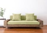 素材感のあるヒヤシンスのローソファは、海辺や南国のリゾート地を思わせます。背面が低く、空間全体に開放感をもたらすのもポイントです。