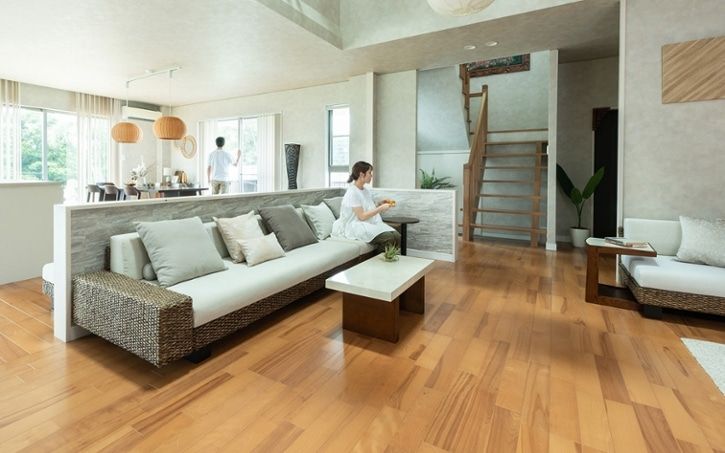 落ち着いた気分で過ごせるモダンリゾートテイストの事例