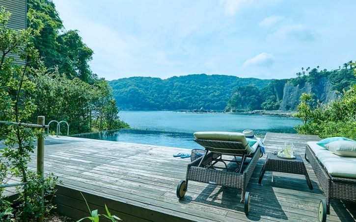 白浜の自然をテーマに癒しと安らぎを提供する、特別なリゾートホテル実例。白浜の自然をイメージさせるような天然素材のインテリアや安らぐアースカラーコーディネートが魅力の空間です。