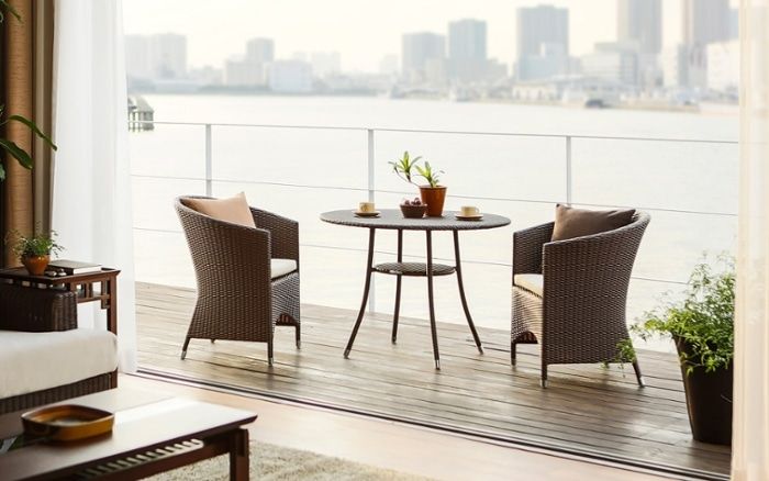 ホテルの屋外スペースには過酷な屋外環境にも耐え、メンテナンスも容易な雨風・塵が以前に強い屋外用家具がおすすめです。