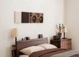 ベッド上には、和紙に雲の様子を墨で描写したアートパネルが静かな雰囲気に温かみをもたらします。