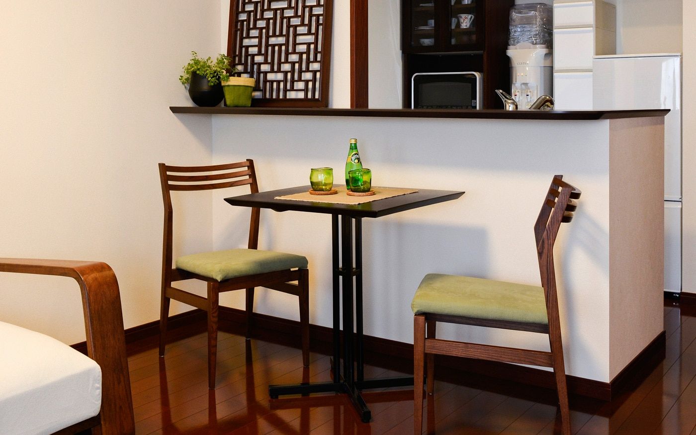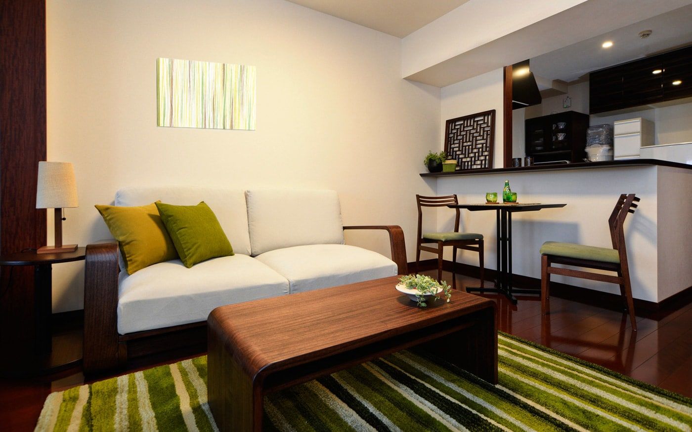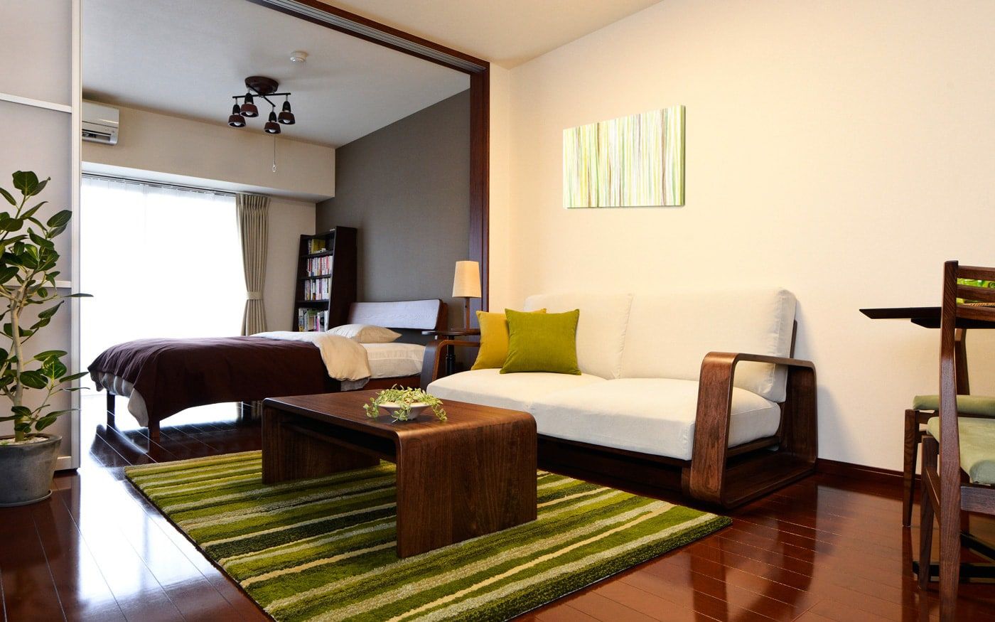 お引越しのタイミングでa.flatで一式ご検討頂きました。当初はラタンなどのソファとも悩まれていましたが、無垢材家具の雰囲気にご興味頂き、最終的には無垢家具シリーズでトータルコーディネートされています。お部屋に入った瞬間にリビングとベッドルームが見渡せる間取りのため、ソファやテーブル、ベッドの素材感を揃えたことで統一感が生まれました。また、全体的にダーク調の家具や建具のため落ち着いた色合いのグリーンをアクセントカラーにしたことで、シックで爽やかな一人暮らし空間が完成しました。この度はa.flatにて家具など一式ご注文を頂戴しまして、誠にありがとうございました。