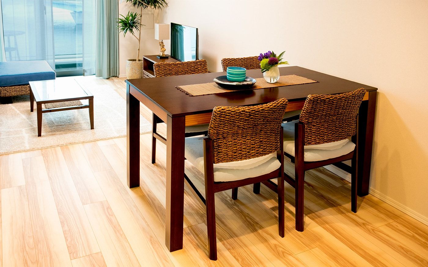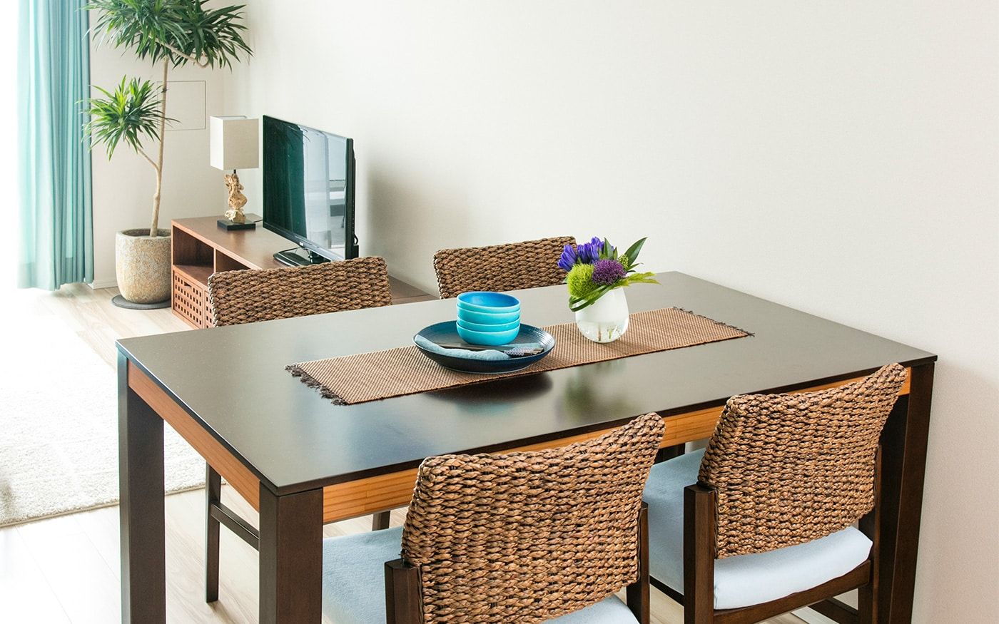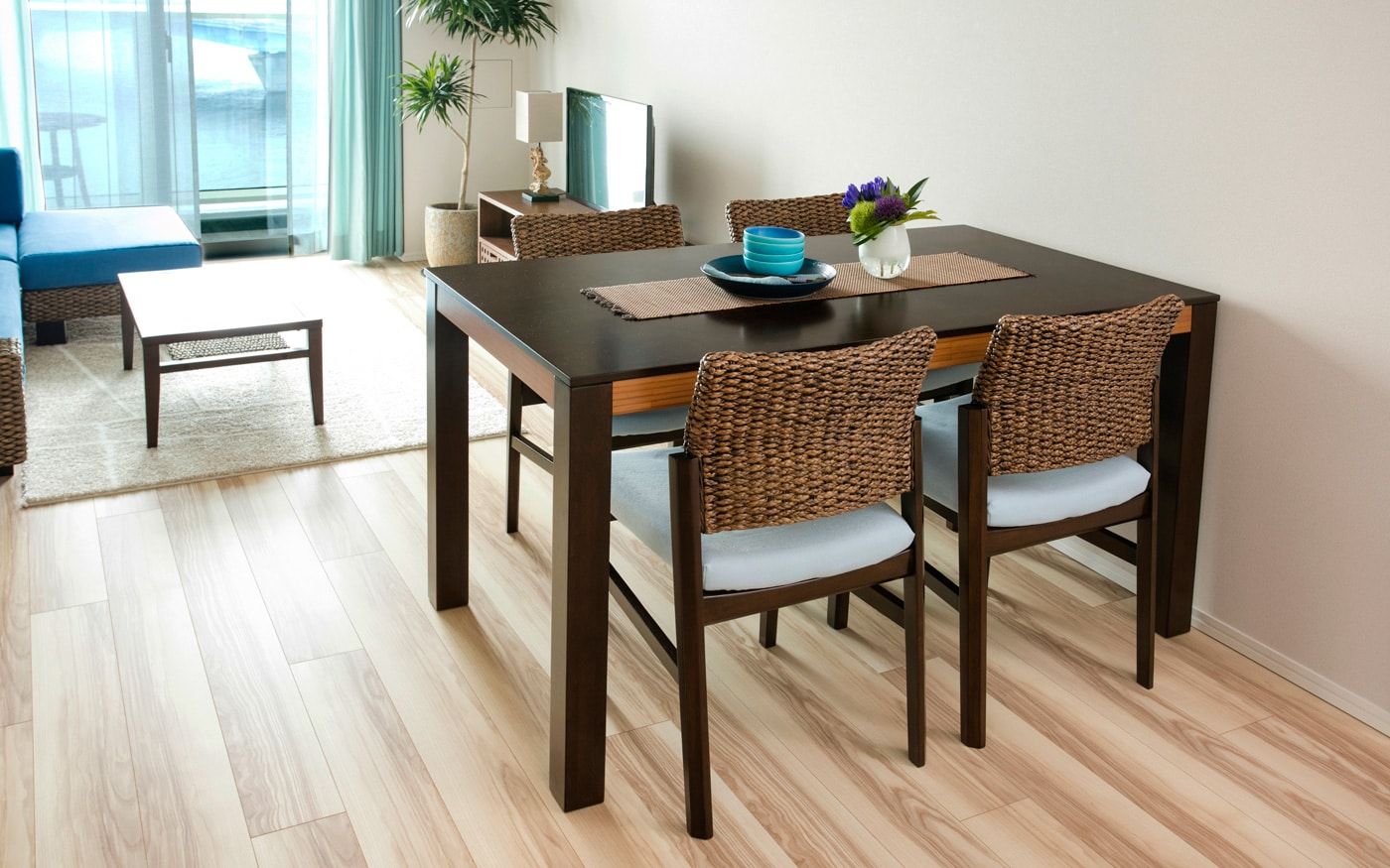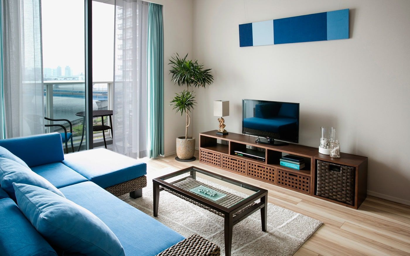 涼しげなブルーのインテリアには、天然素材の家具が最適です。木のぬくもりが空間に落ち着きを与え、リラックスした雰囲気を生み出します。籐や竹製品も軽やかで、爽やかなブルーと組み合わせることで、穏やかな海辺のリゾートのような空間を演出できます。自然素材の家具は、見た目にも心地よく、長時間過ごすリビングには特におすすめです。