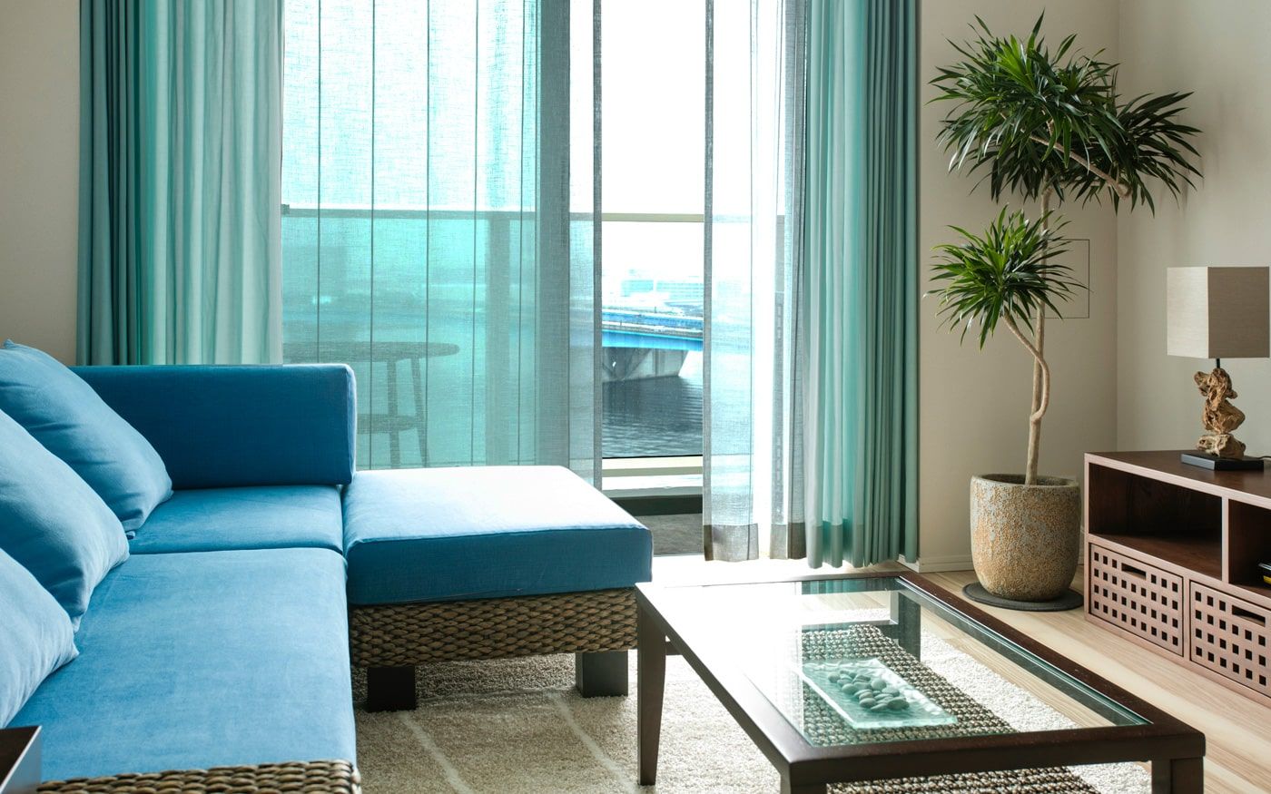 爽やかなブルーを基調としたインテリアコーディネートで、清涼感あふれるリビング空間を実現しましょう。淡いブルーのソファやカーテンを配し、海や空を感じさせるデザインで、穏やかな時間をお過ごしいただけます。夏の暑さも忘れさせる涼しげなお部屋で、日々の疲れを癒してください。