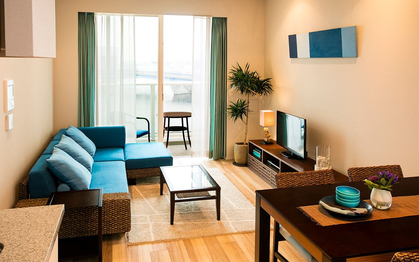 川のせせらぎを感じるようなお部屋にぴったりなブルーのソファ。自然の美しさを映すようなブルーのソファは、川沿いの住まいに穏やかな調和をもたらします。リラックスした時間を過ごすための理想的な選択となるでしょう。