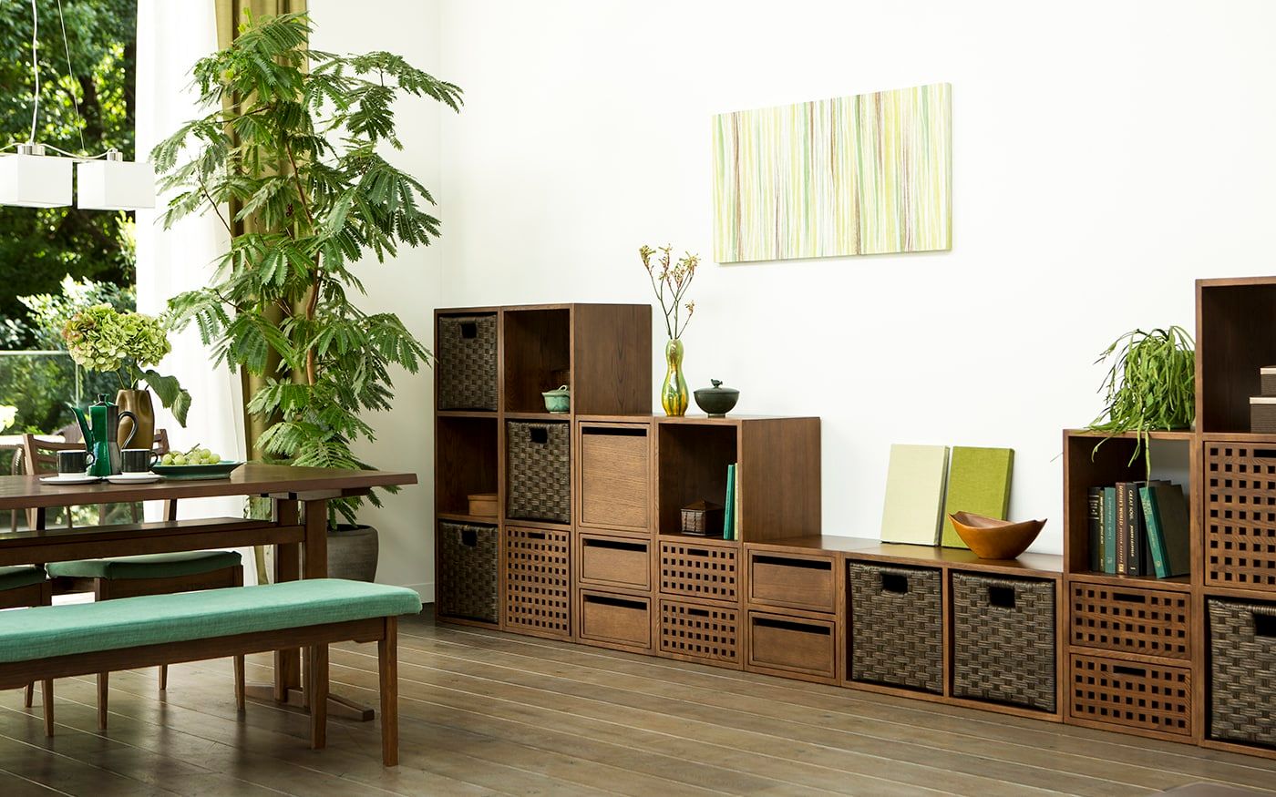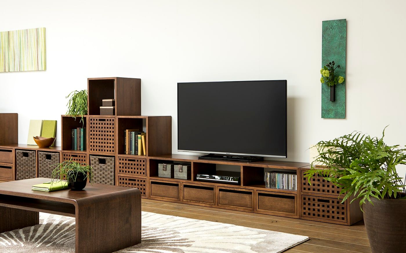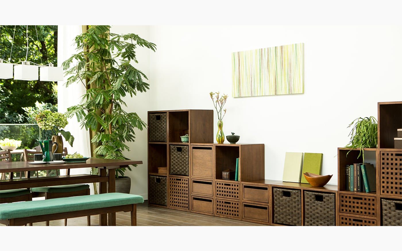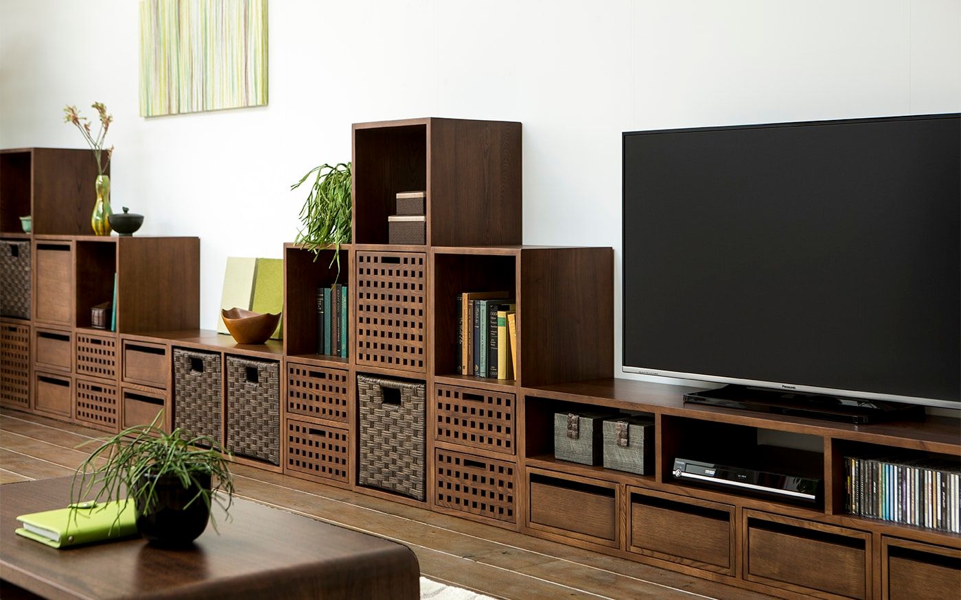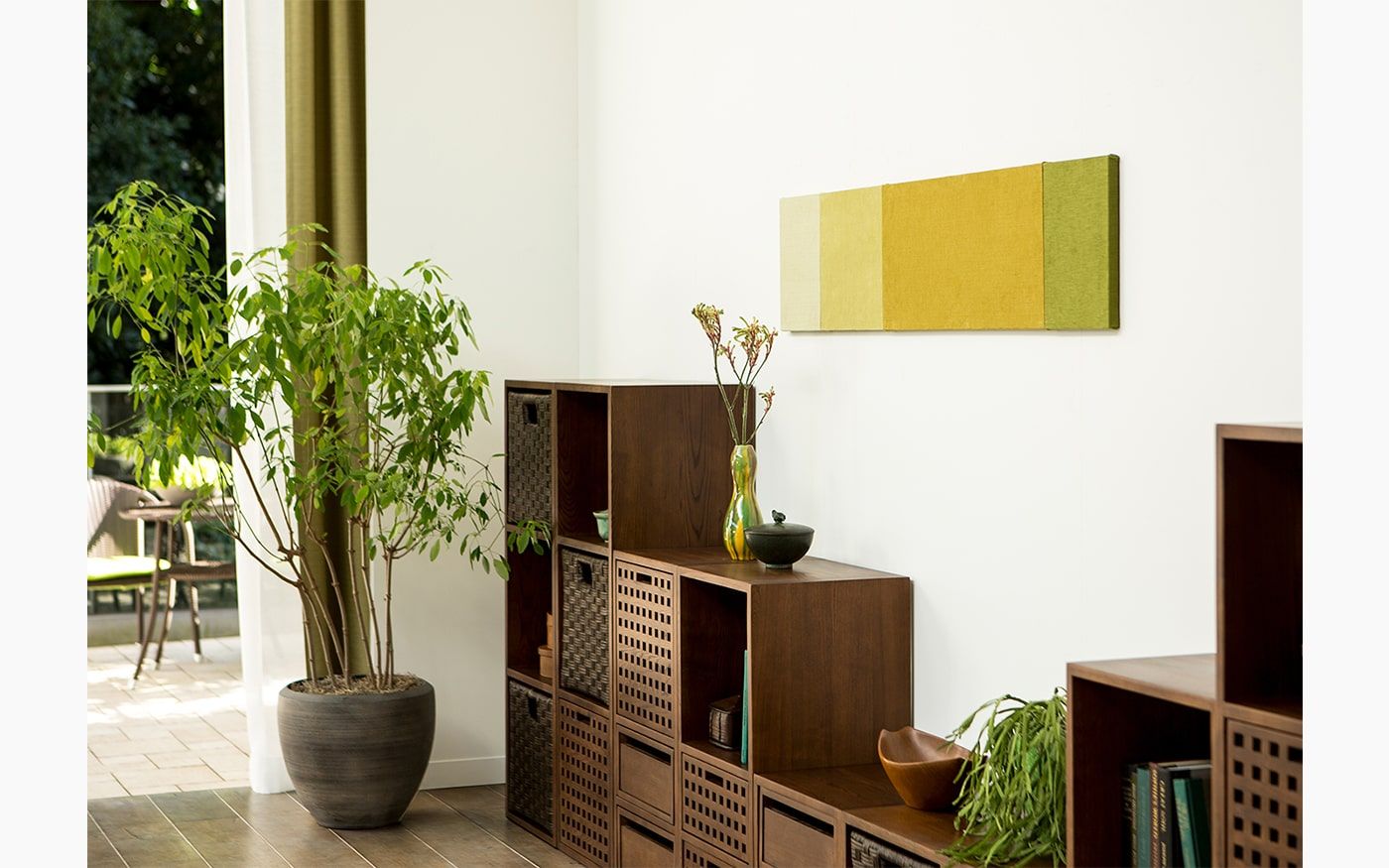 キューブシリーズは格子、フレーム、ラタンの前板デザインが選べます。自由自在にデザインが変えられるのがキューブの魅力。ランダムな前板デザインや形は、空間に心地良いリズム感を与えてくれます。