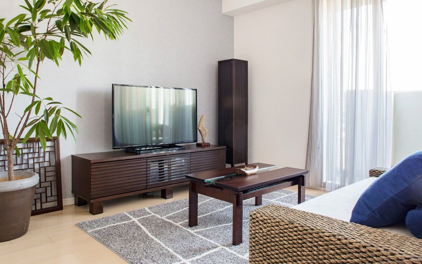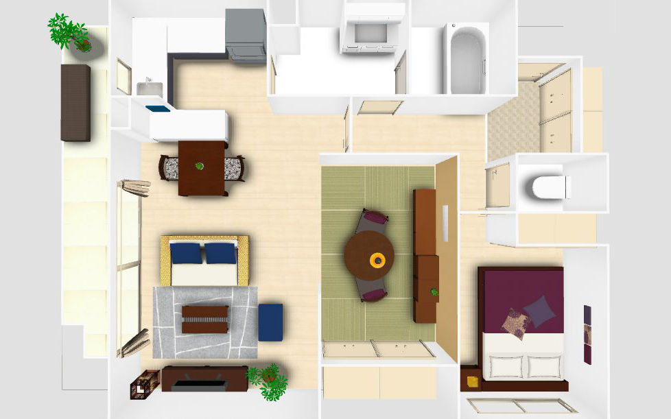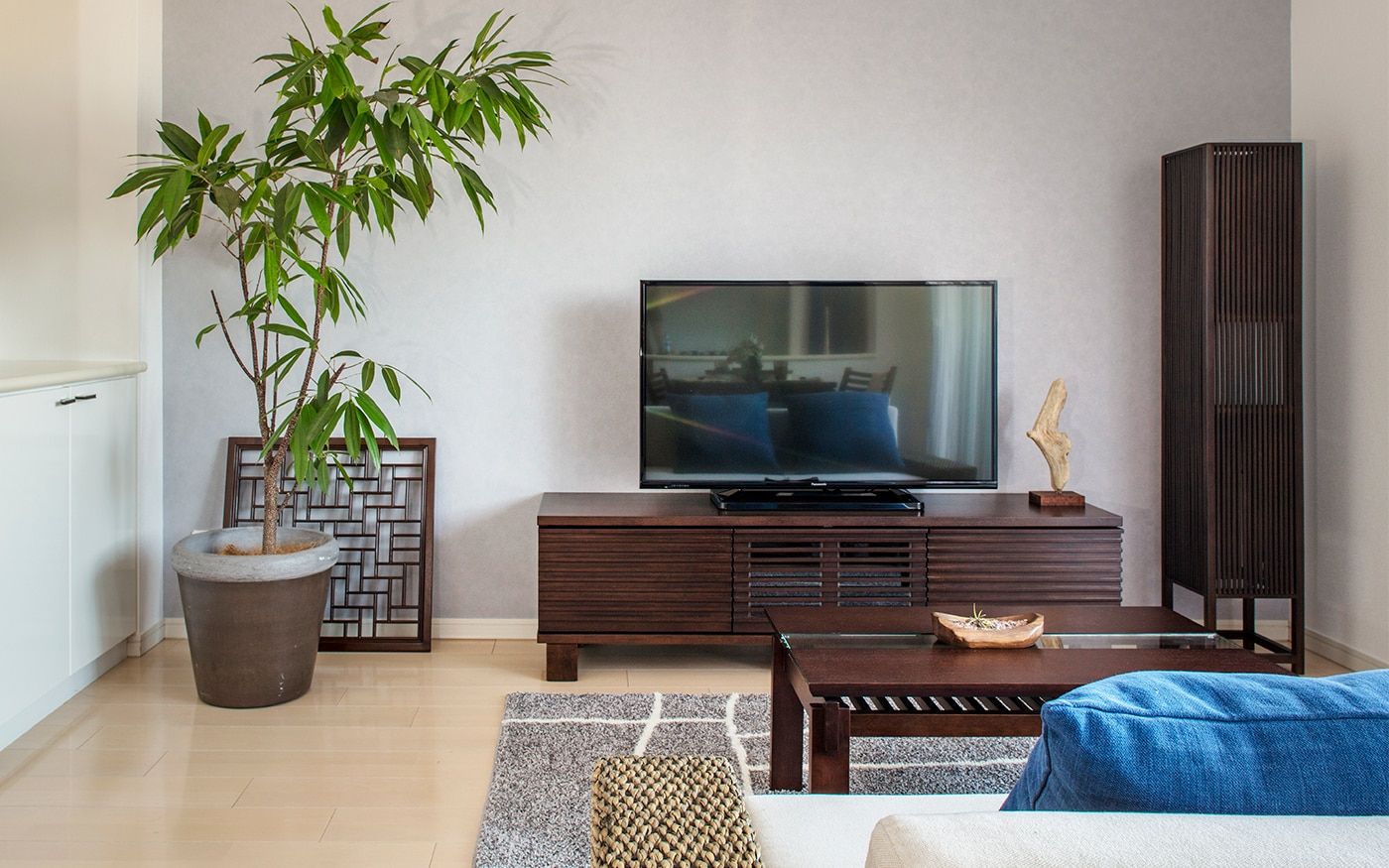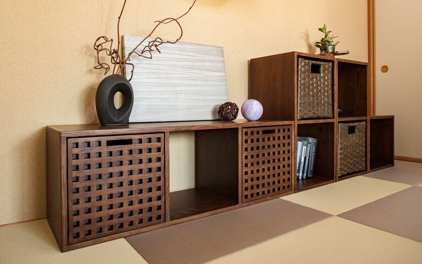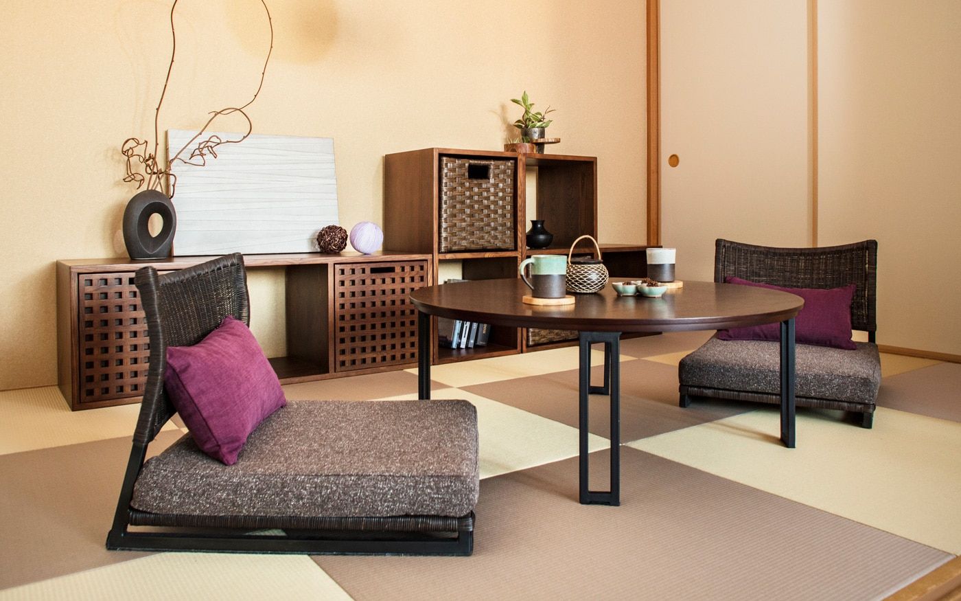 和室のインテリアでまず気を付けたいのは、家具の高さです。日本の文化である和室は、本来床に直接座って寛ぐもの。もちろん、家具を置かずただ畳の上でごろ寝するのも良いですがインテリア性に欠けてしまいます。そこで、床座で寛ぐための家具を置けば、空間にも馴染み、さらにゆったり過ごせるようになるでしょう。