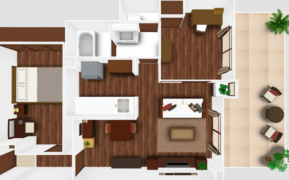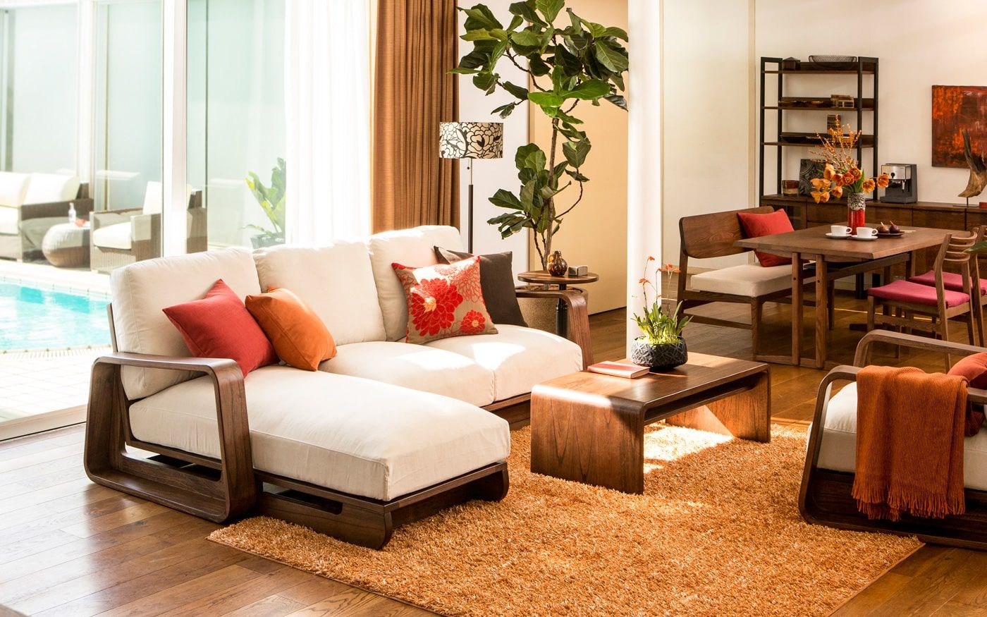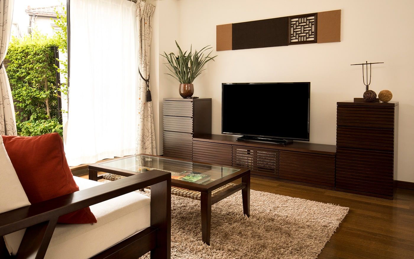 バリには近代的でスタイリッシュなホテルから伝統や趣を感じるホテルなど様々ありますが、今回のご自宅は、自然素材の家具の温もりに癒されるバリのホテルをモチーフにリビングをコーディネートしました。ダークブラウンの深い色合いが落ち着いた雰囲気を醸し出し、アジアンインテリアならではの深い寛ぎを感じられます。