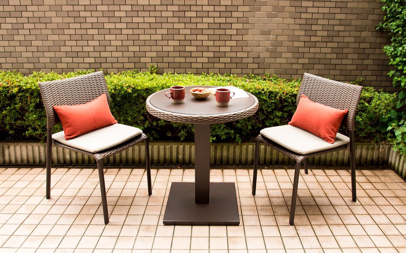 バリで過ごす楽しみといえば、ビーチクラブやカフェなどで気持ち良い太陽を浴びながら外で過ごす非日常的な時間。自宅でもそのような特別な時間を過ごせるよう、テラスに屋外用家具を設置しました。