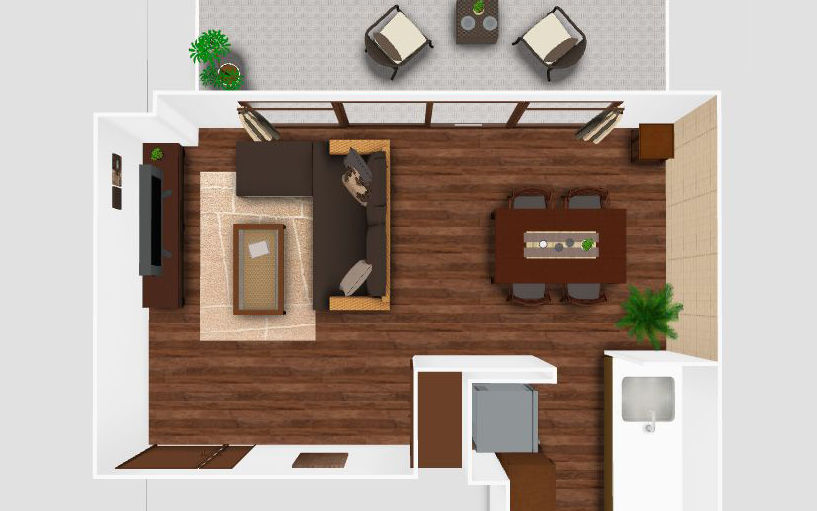 リゾート感溢れるダイニング空間をお家で実現しましょう。ブラウンを基調とした家具でアジアンな雰囲気を演出し、南国の風を感じるアクセントとして観葉植物を加えます。天然素材のカーテンや、壁面材で温もりを添えて、リゾートムードを味わえるでしょう。