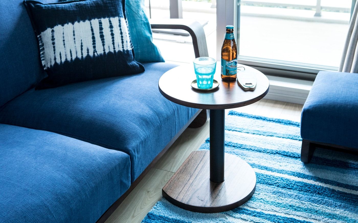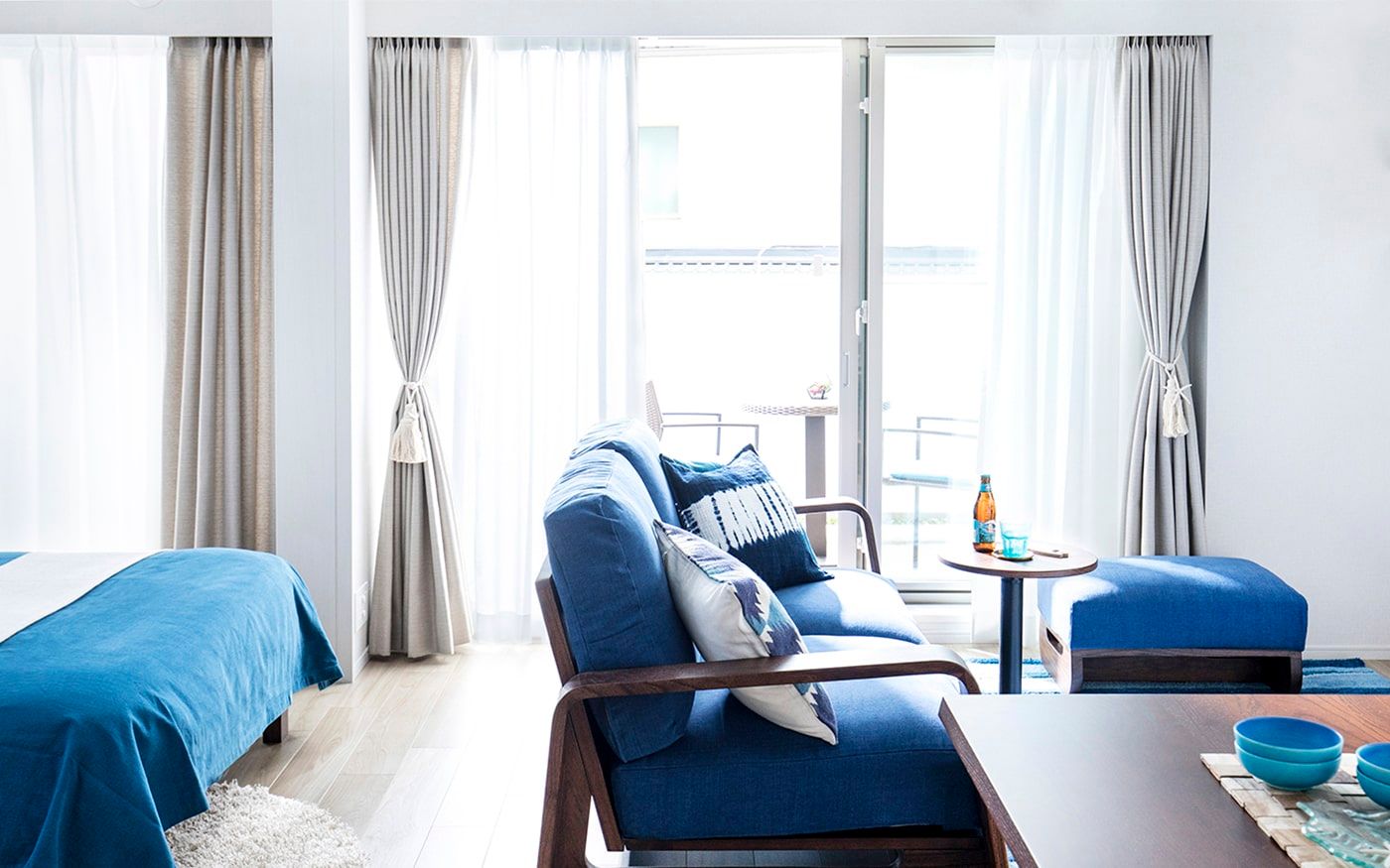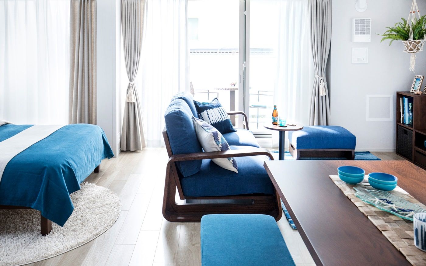自宅の顔となるリビングルーム。存在感がありながらも、穏やかで心地良い空間を演出する深いブルーの色合いに包まれれば、まるで海辺でリラックスしているようなゆったりとした時間を愉しめます。