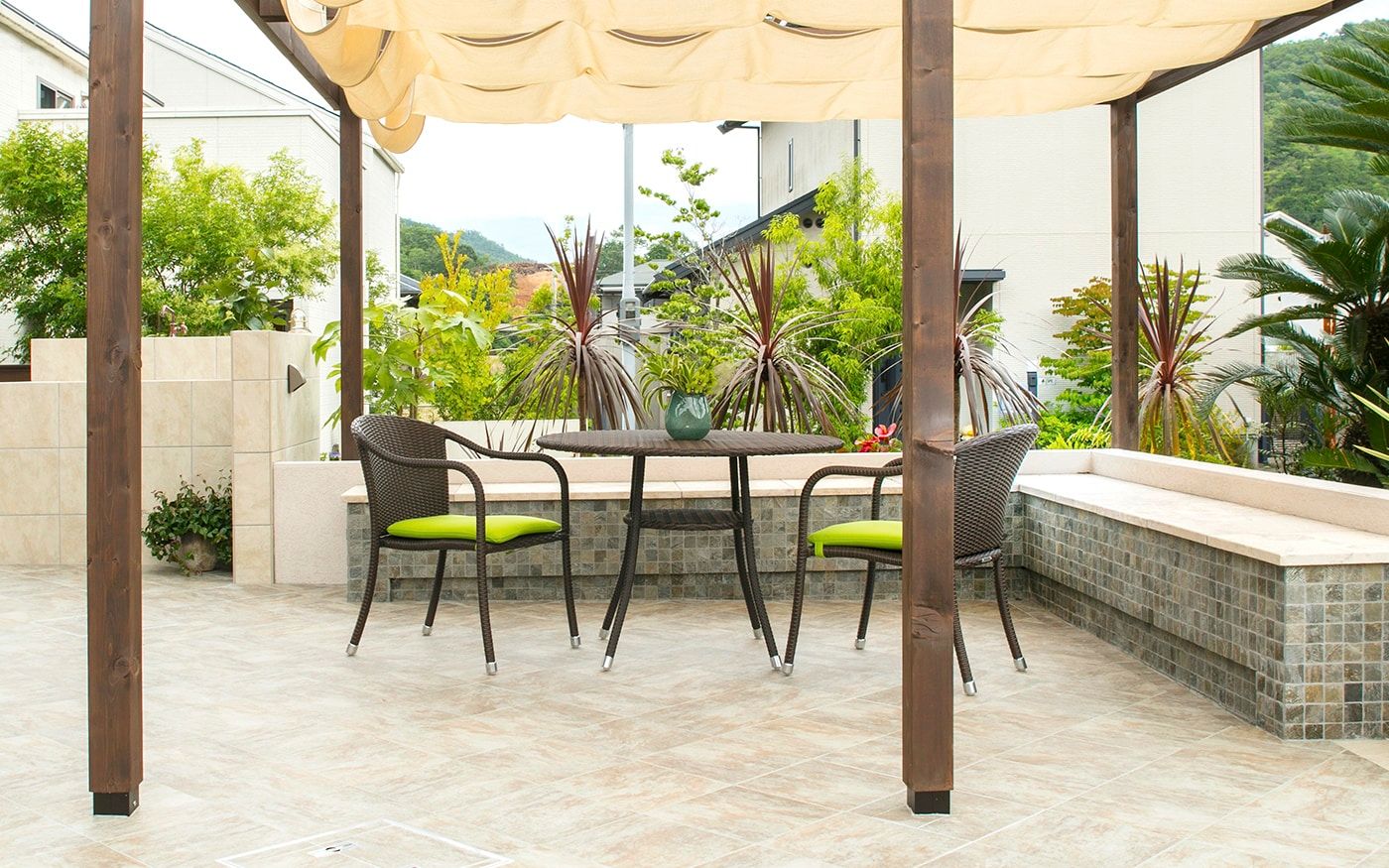 太陽の光を浴び、風を感じながらのんびりと過ごす屋外スペースでのひと時は、リゾートの真の魅力であり楽しみです。こちらのお客様宅でも、そのような極上のリラックスタイムを自宅で味わうためにオープンテラスをつくりました。
