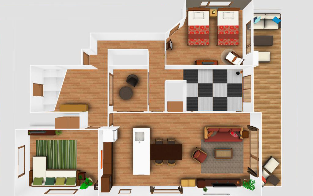 ベッドルームは、リビングダイニングと同様のレッド・オレンジというサンセットカラーでコーディネートを行いました。別荘の中のメインルームであるLDKとベッドルームを同じテイストにすることで、別荘全体に統一感が生まれ、まるでリゾートのヴィラのような感覚に。