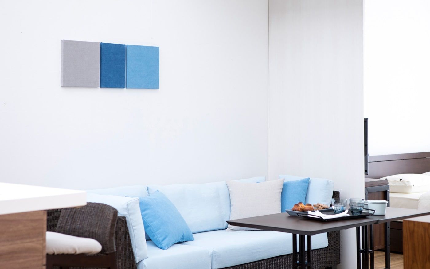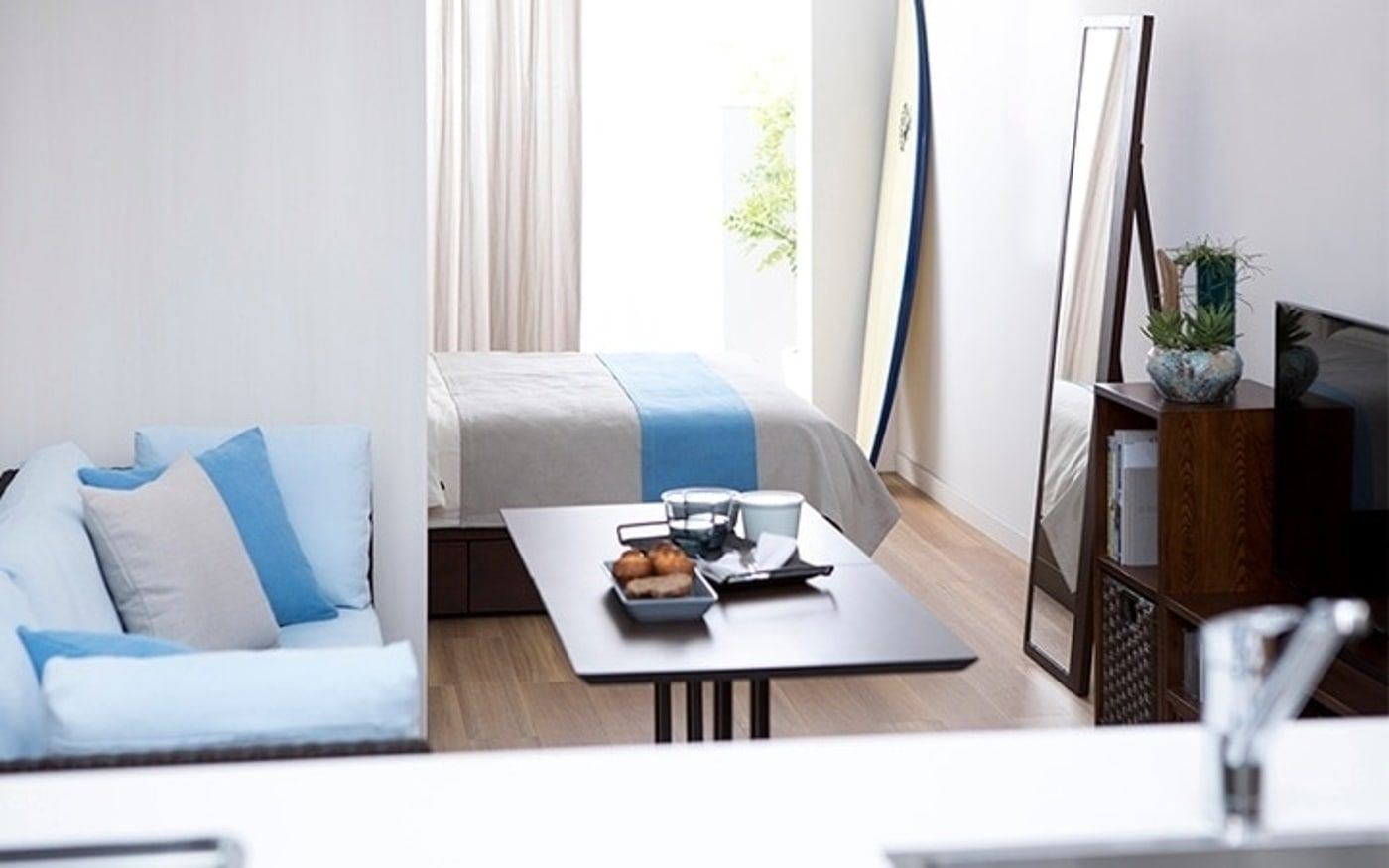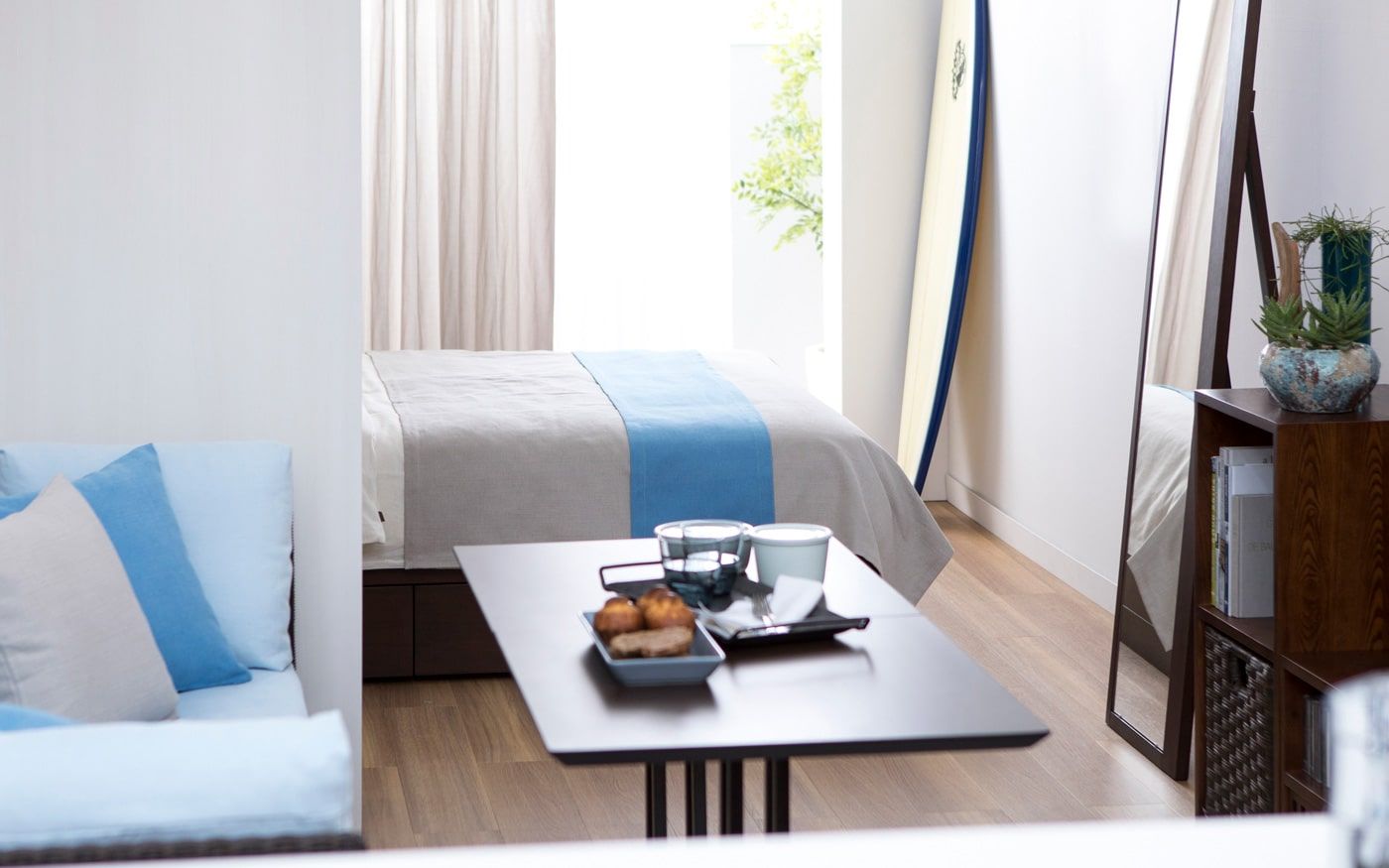 爽やかな海風を運ぶように、リラックスした場を演出するブルー。海と空の青に、白砂のビーチが映えるようなリゾート空間を、暮らしに取り入れましょう。