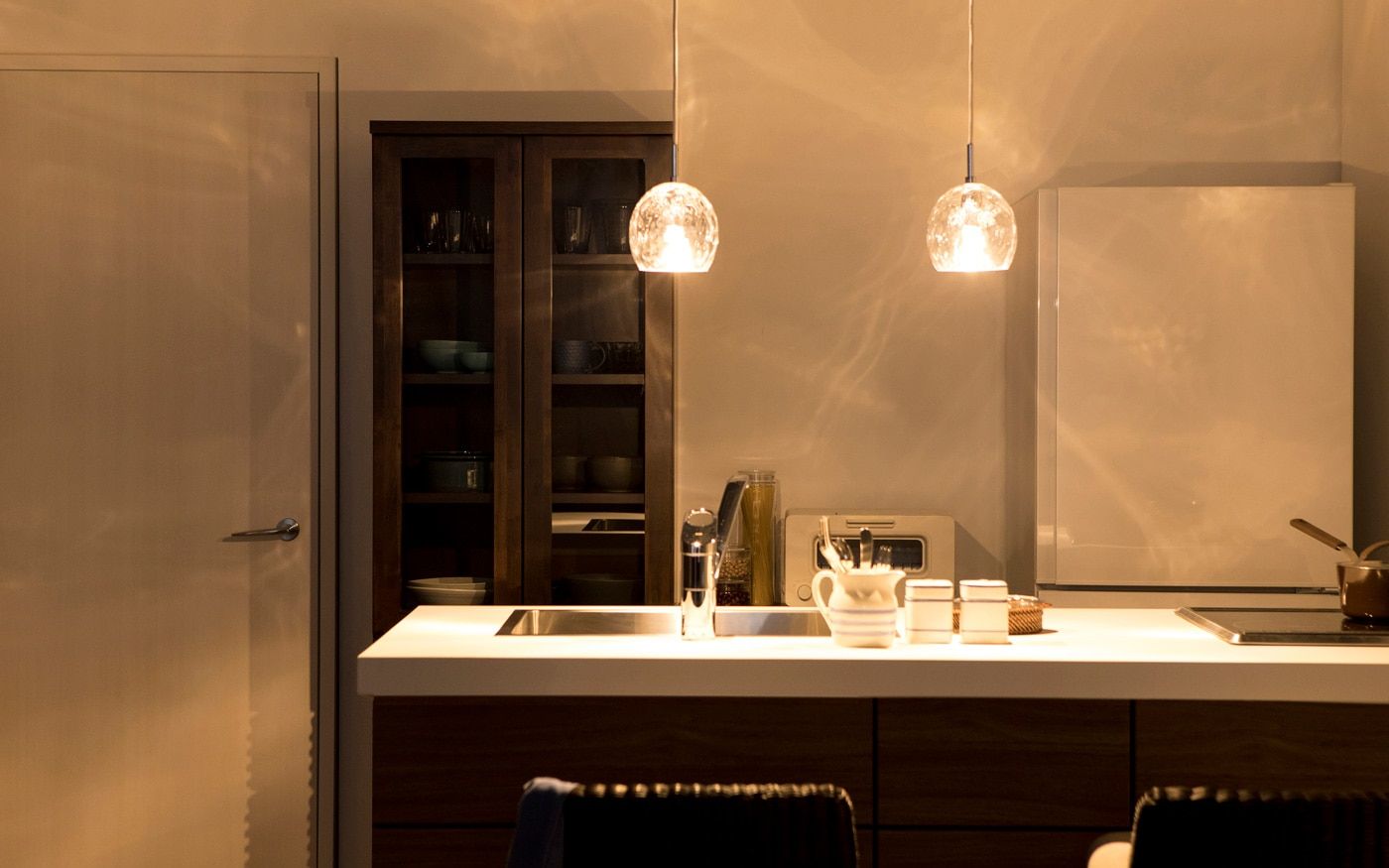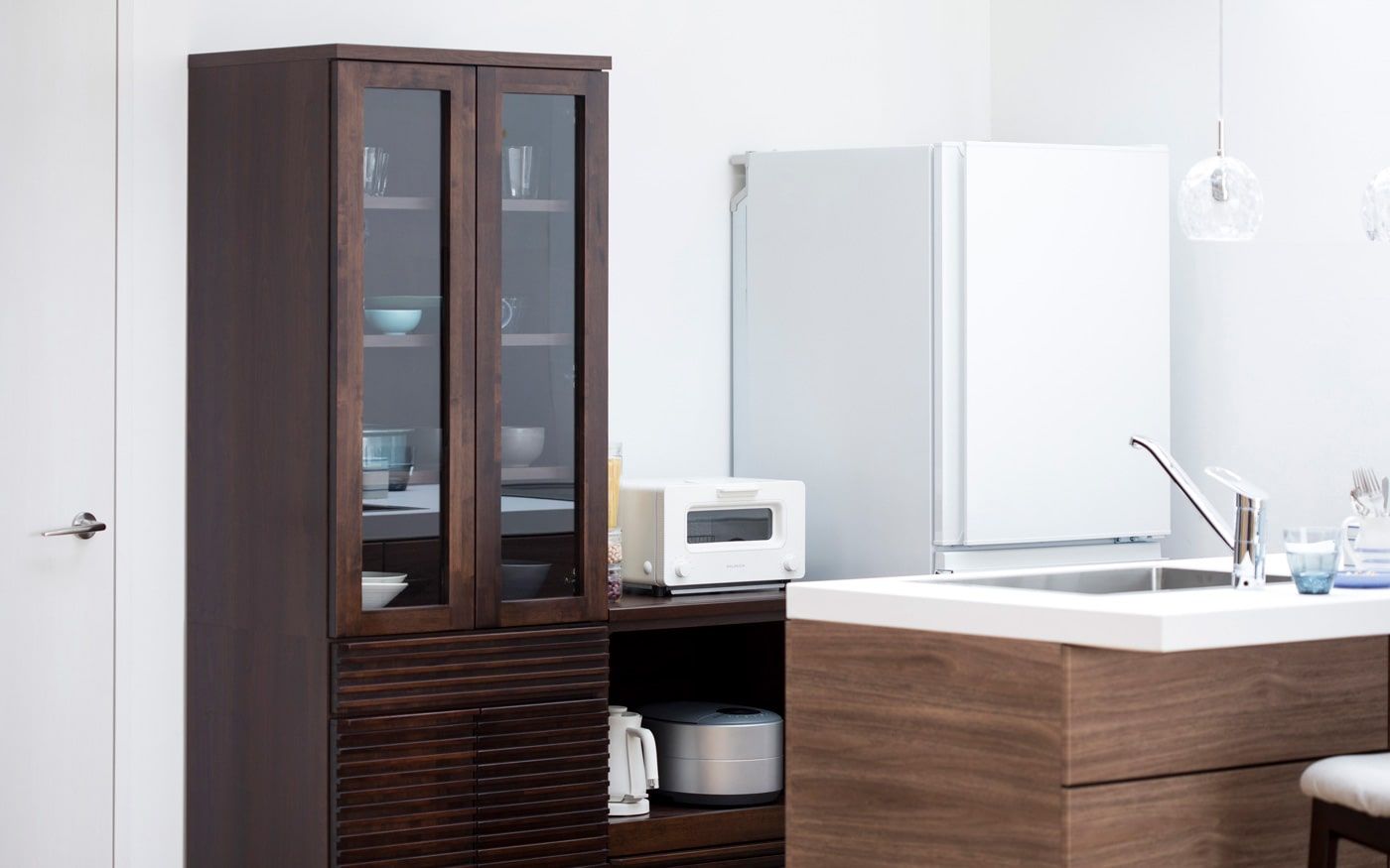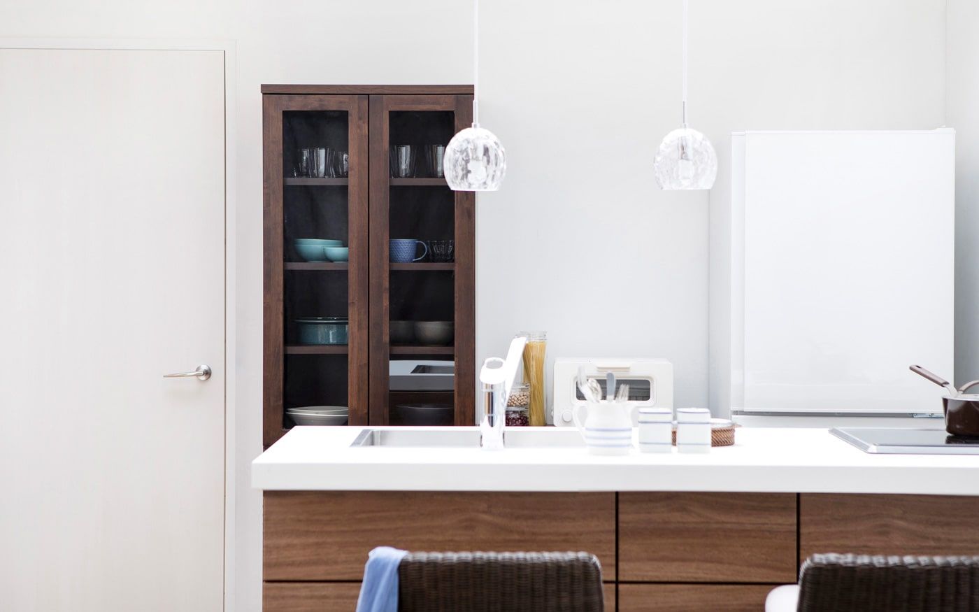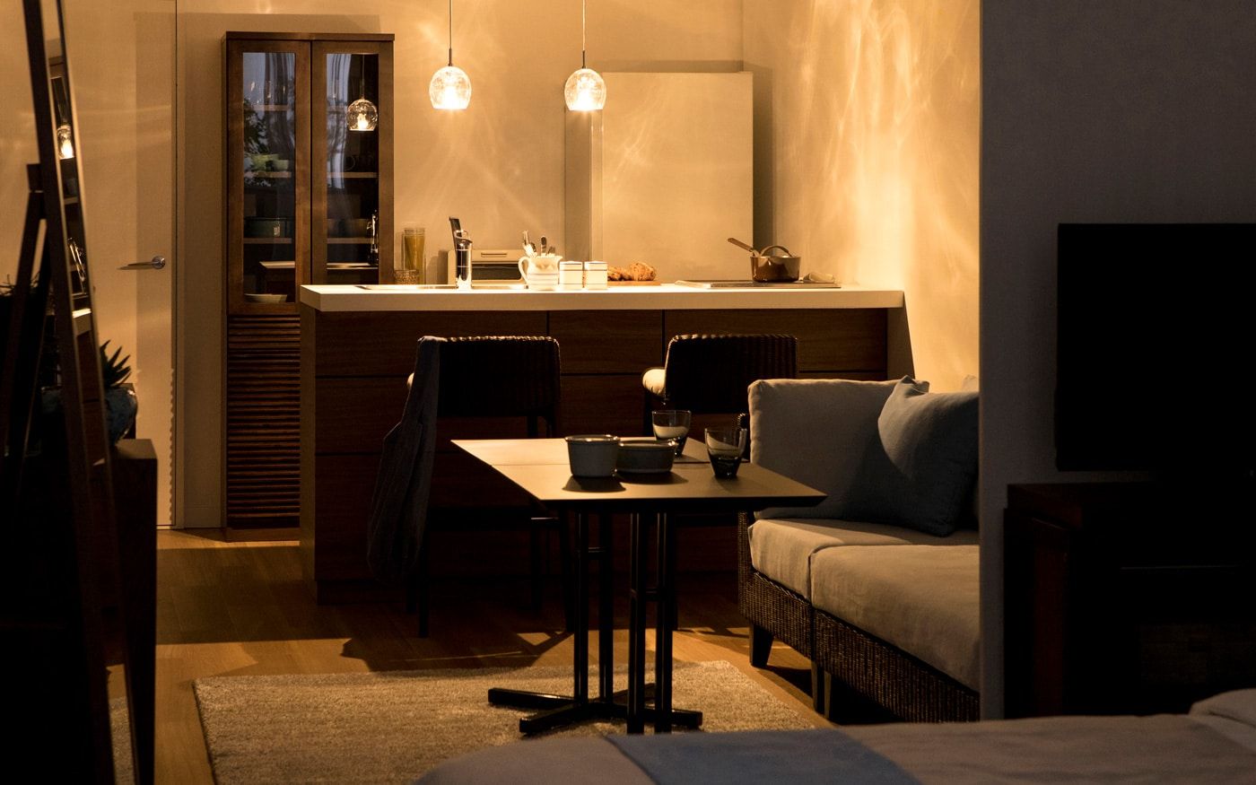 部屋にキッチンカウンターが有る時は、カウンターチェアを配置すれば限られた時間帯も充実します。例えば、朝食やランチの時間、夜に二人でお酒を飲むなど、ソファとは違った寛ぎ時間を味わえます。