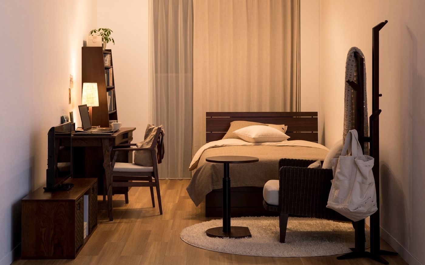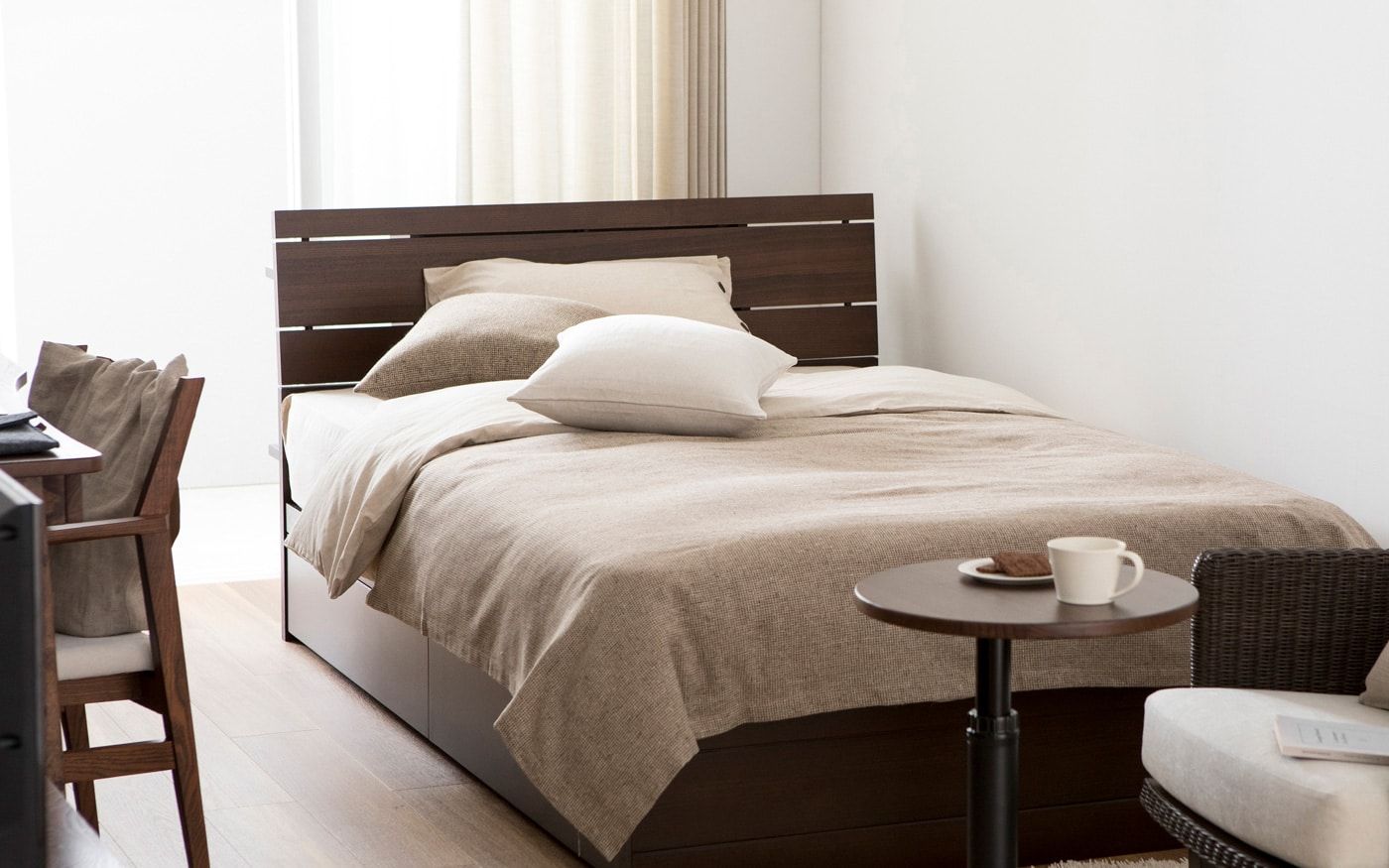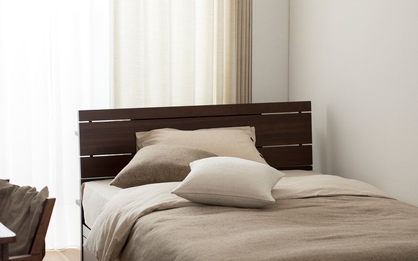 モダンテイストの定番カラーはモノトーンにビビットなカラーをアクセントですが、ナチュラルモダンの場合は ブラウンをベースにアイボリーやベージュなどの柔らかい色合いを加えるのが基本です。ワンルームで考える場合は、クッションカバーやラグ、寝具、カーテンなどで手軽にプラスすることができます。