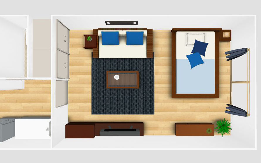 部屋に入った際、広く感じさせる要素として一番大きいのが「家具の高さ」です。もちろん幅や奥行きも重要ですが、家具の高さが低い(=ロースタイル)というポイントは空間に開放感や抜け感を最も生み出します。海の地平線などと同様に、部屋の奥側まで見渡せることによって「部屋が広い」と認識されやすくなるためです。