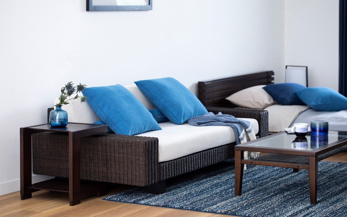 爽やかな海風を運ぶように、リラックスした場を演出するブルー。海と空の青に、白砂のビーチが映えるようなリゾート空間を、暮らしに取り入れましょう。