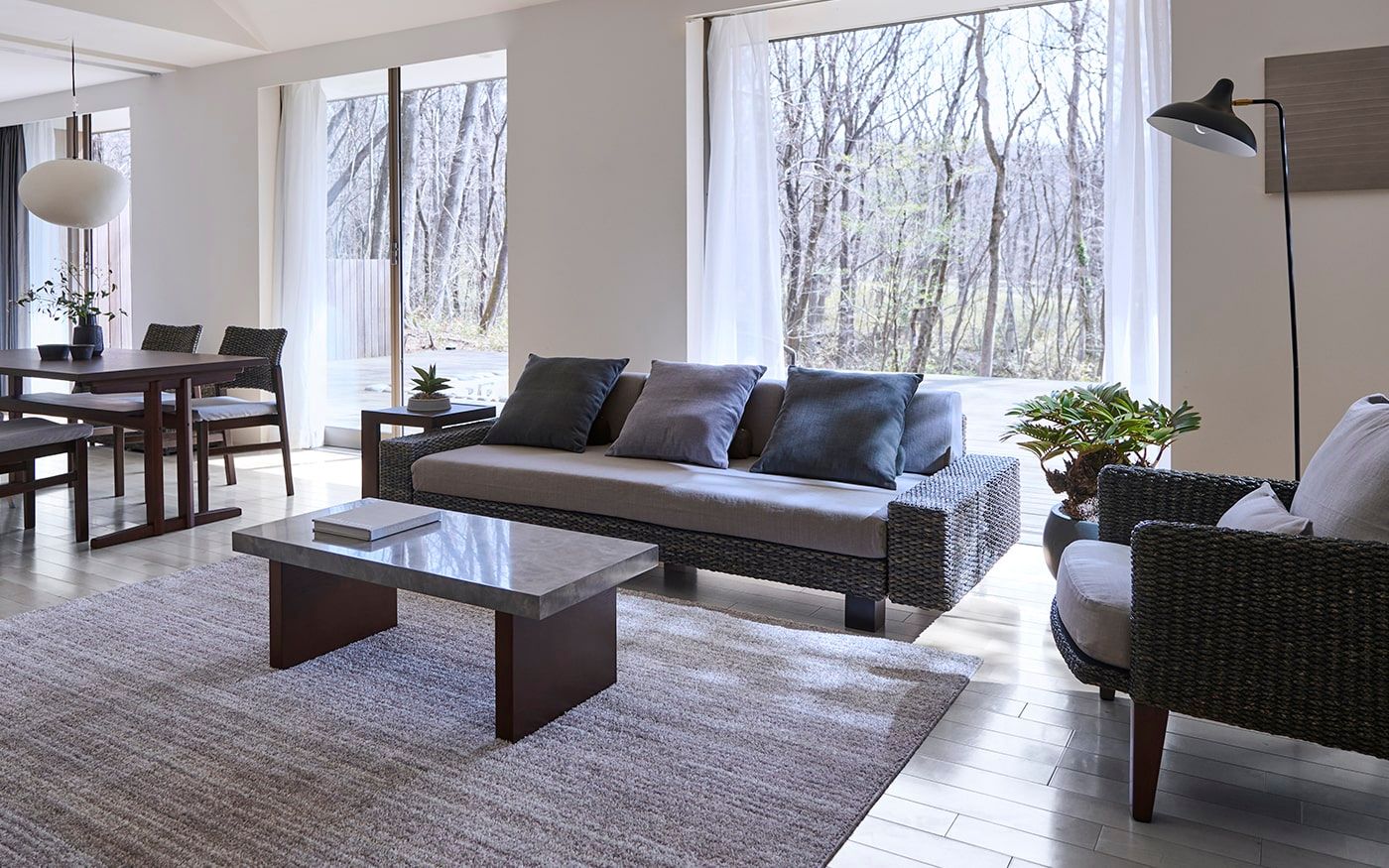 空間をくつろぎで満たすグレートーン。おぼろげな雲霞の陰影が映し出す、凜とした表情と澄みわたる空気感で、リラックスできる時間を演出してみませんか。