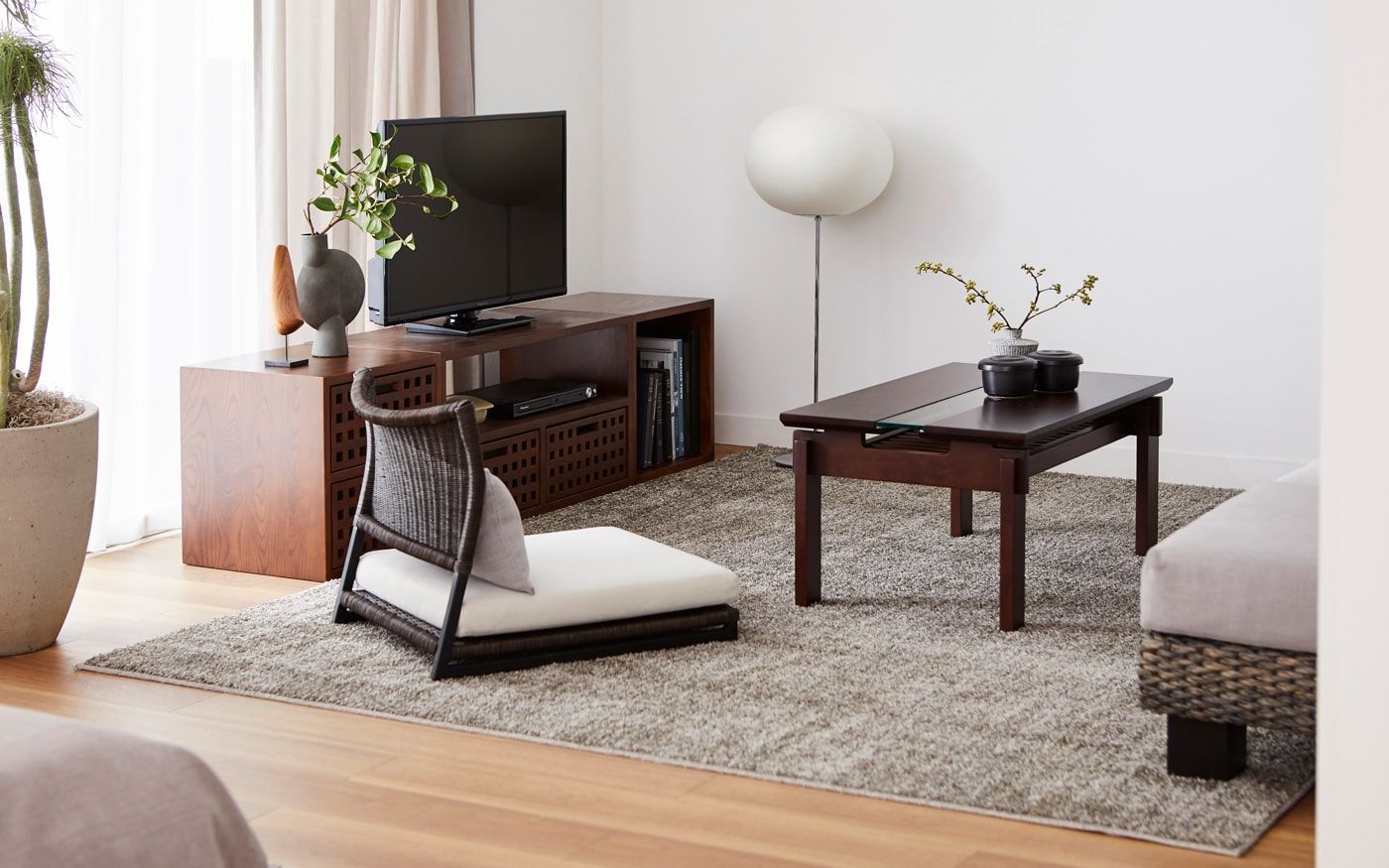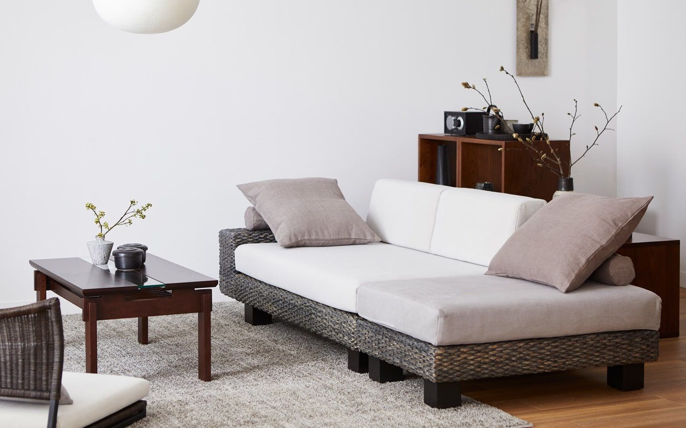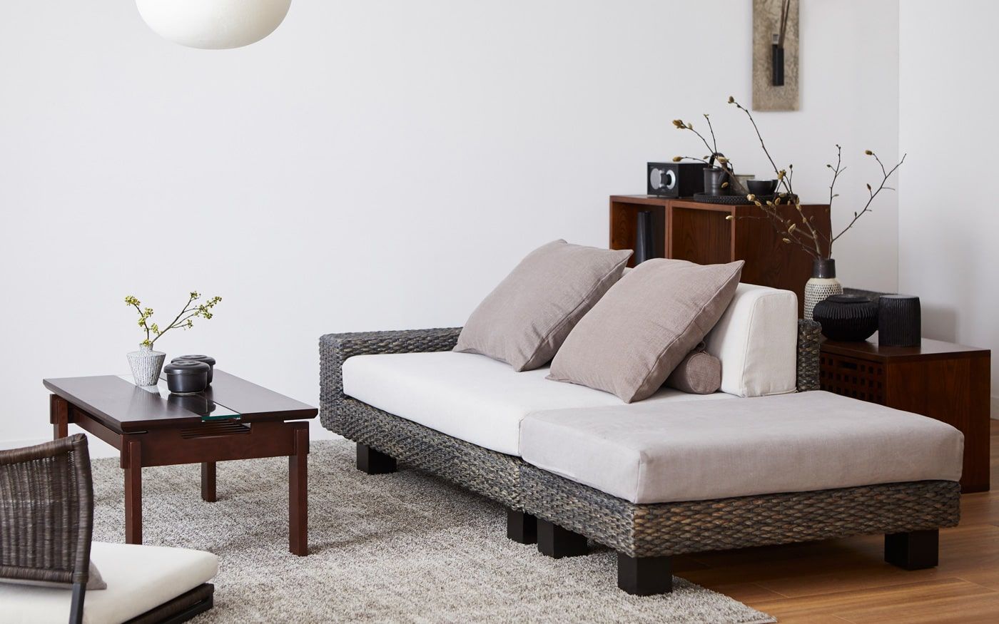 洋室を和モダンな雰囲気に変えてくれる家具が高さの低いロースタイル家具です。和モダンインテリアに欠かせない床座生活とマッチしてくれるローソファや座椅子などの家具を主役にすれば、フローリングのような洋室でも和モダンなインテリアコーディネートが可能に。