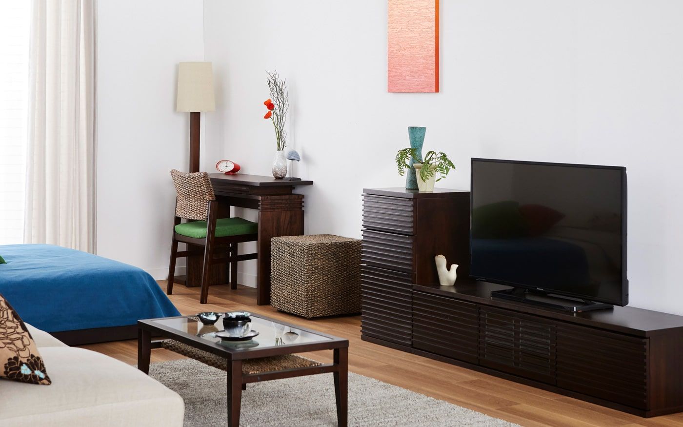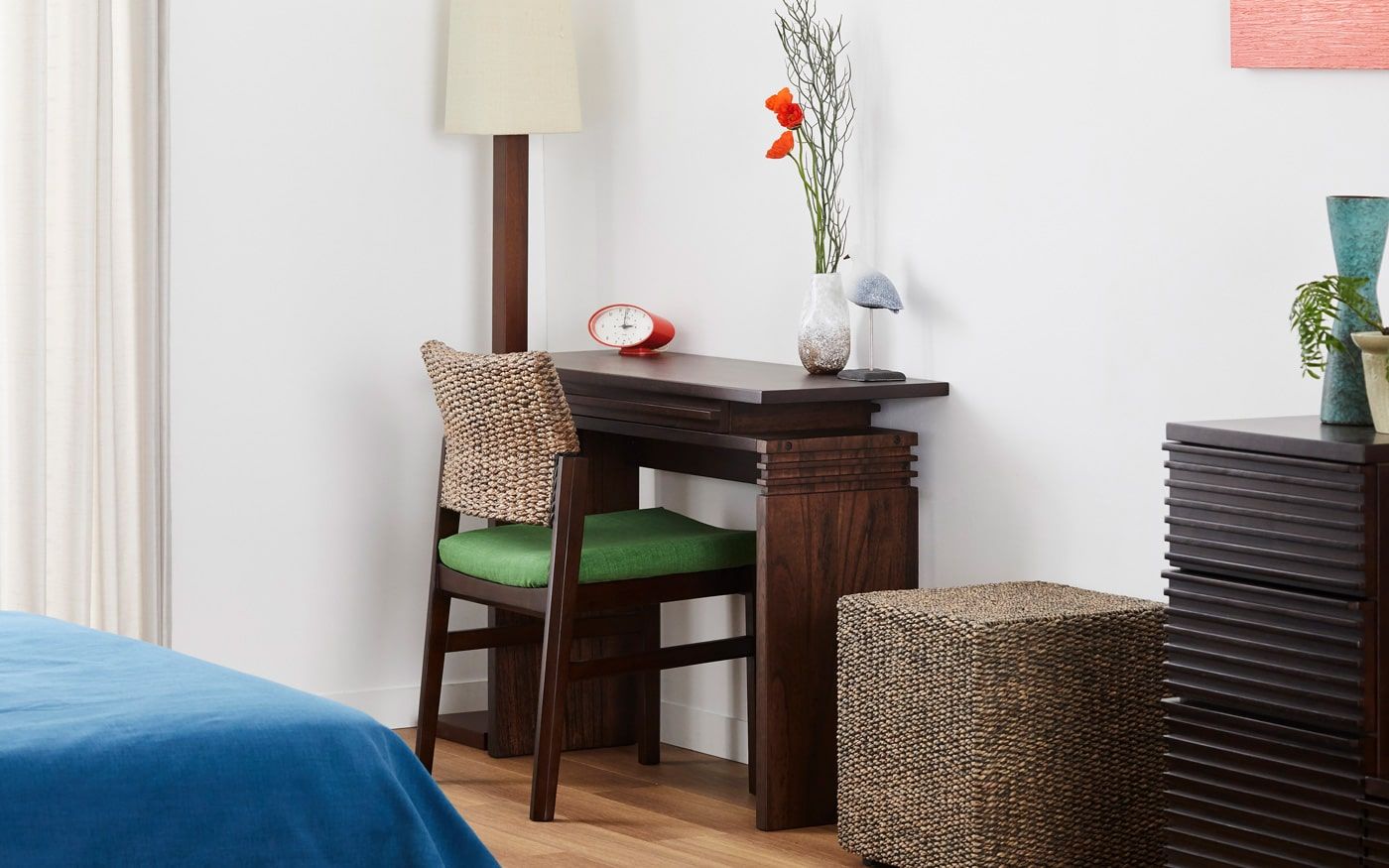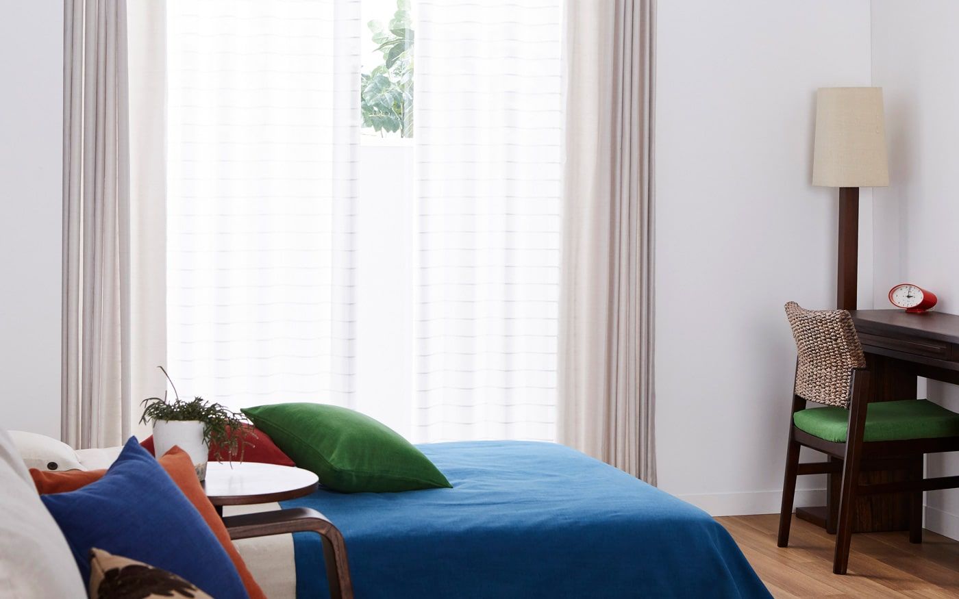 清々しく、安らかな空気感はアイランドリゾートならではの魅力です。時のうつろいによって映し出される自然と神秘の情景を、ご自宅でも再現してみましょう。色とりどりのブルーやグリーン、花柄のファブリックなどがポイントになります。