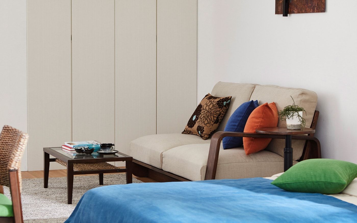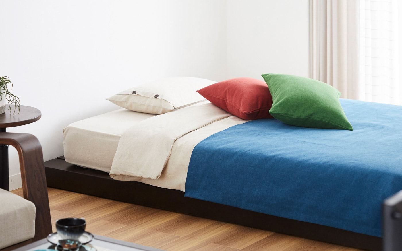 ハワイの広々とした海を思わせるローベッドに、穏やかな波のようなブルーのベッドスプレッドをプラス。寝室に爽やかな風を運び、心地よい眠りへと誘います。このベッドで、毎晩リゾート気分を味わいながら、日々の疲れを癒しましょう。