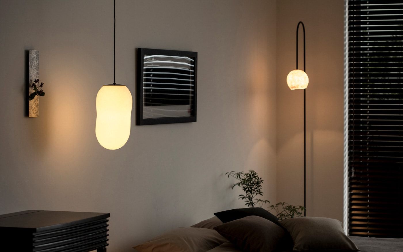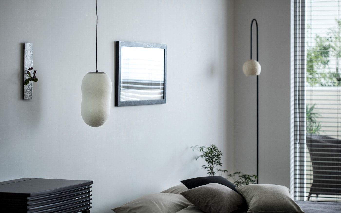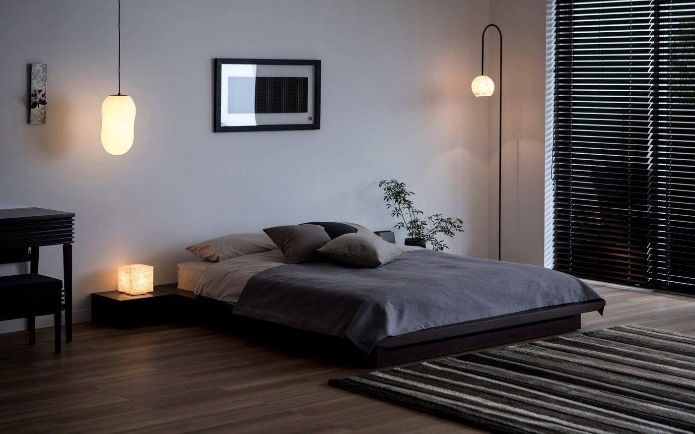 人は温かみを感じた方が安心して眠りに付けるため、温もりをプラスしたクラウドグレーのコーディネートが相性良く馴染みます。大事なポイントはグレーの空間に温かみが出やすい和紙などの照明を用いることです。寝具やクッションを中心としたグレーのコーディネートが、夜になると温もり感じる空間に様変わりします。