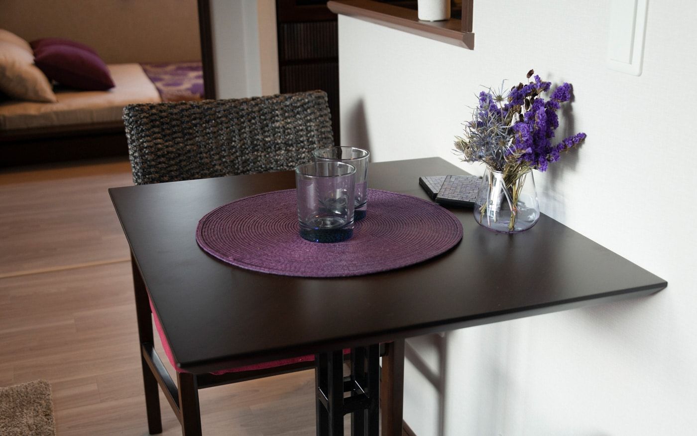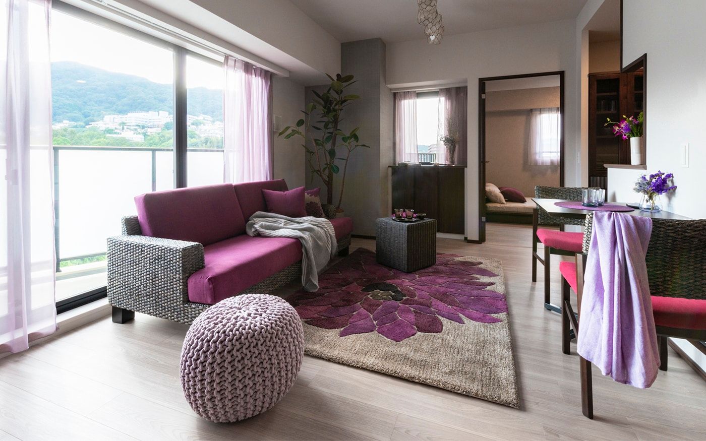 ミステリアスな雰囲気のパープルが、お部屋の中でオフの雰囲気をつくりだしてくれます。紫色の花のように、艶やかなコーディネートをしてみませんか。