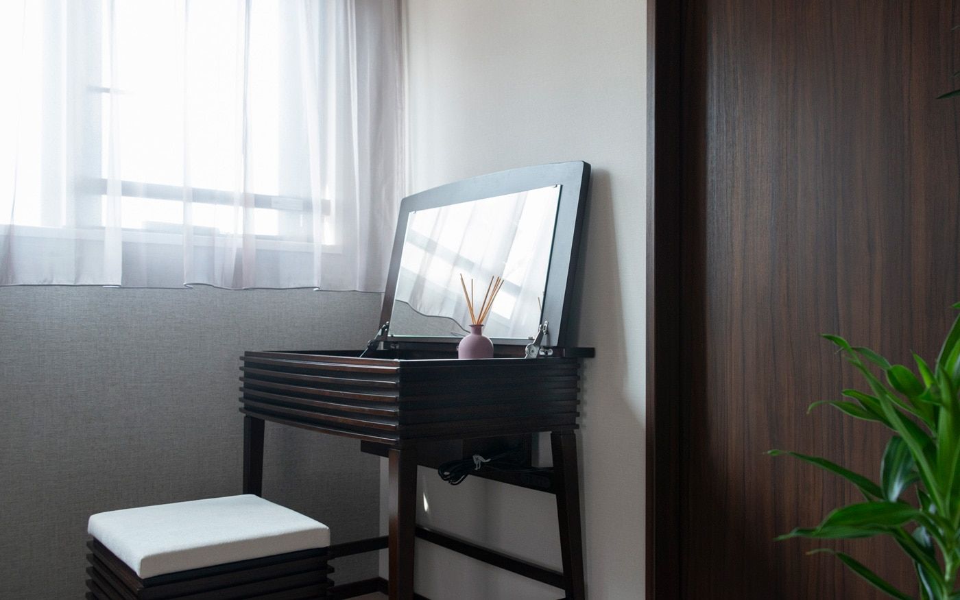 「ラグジュアリー、一人暮らし、女性らしさ」というテーマからダークグレーのヒヤシンス家具をメインに、ダークブラウンの木製家具中心に合わせました。これらの家具イメージによって、部屋作りのベースとなるラグジュアリー感などが作りやすくなります。