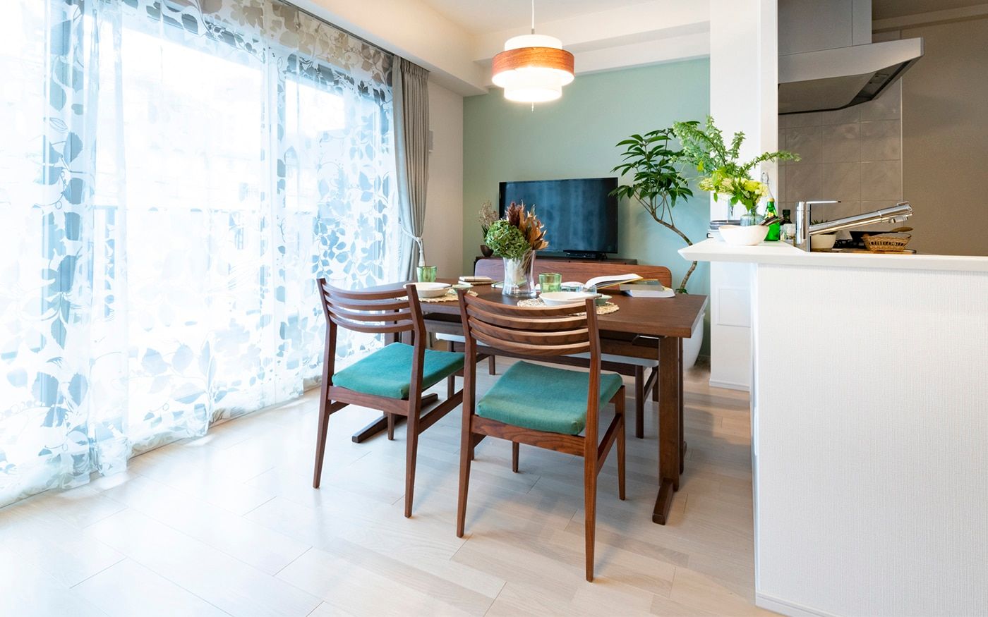 陽の光をまとった爽やかなグリーンが、空間にきらめきをもたらします。明るい色合いに囲まれて、心も晴れやかになる空間をつくってみませんか。
