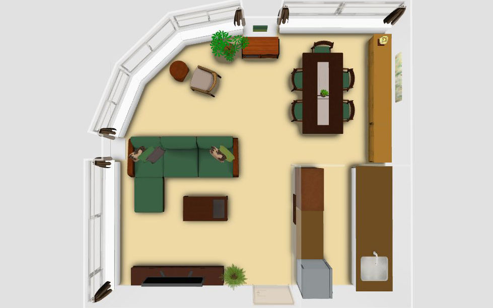 リゾート地の中でも森の中に佇むロケーションを部屋に取り入れるには、グリーン中心のカラーコーディネートが欠かせません。特に都会の高層マンションでは緑が目に入る光景は珍しいため、重要なポイントに。部屋の主役となるソファ・チェアのカバーに森のような深い色を用いて、クッションカバーには少し淡いグリーンや森の陰影をイメージしたブラウンを添えれば、安らぎ感じる森リゾートの空間を楽しめます。