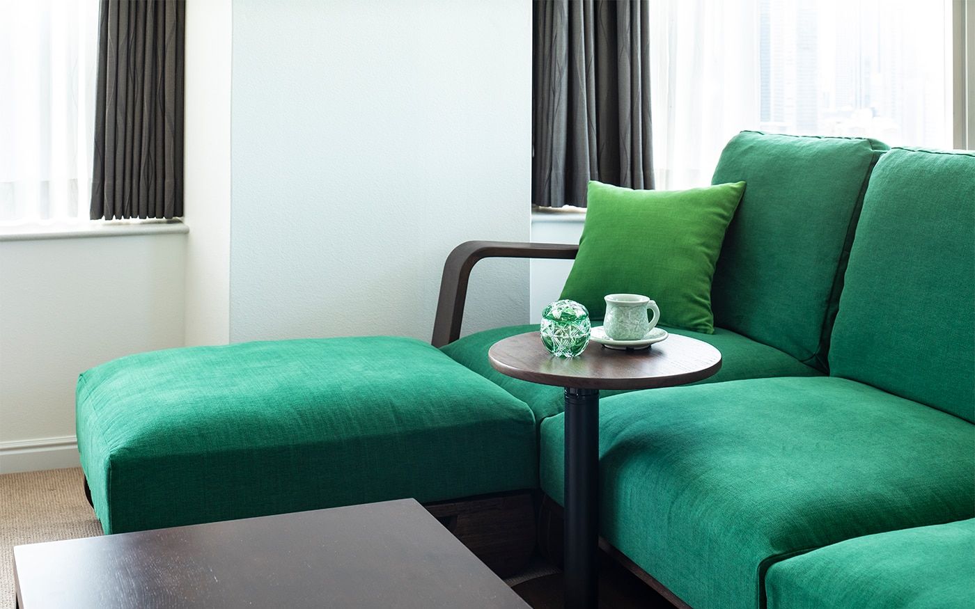豊かで美しいグリーンのグラデーションカラーが、深い森に包まれている様な、癒しの空間を描きます。心から安らげるリラックス空間で、あなただけのひとときを過ごせるでしょう。