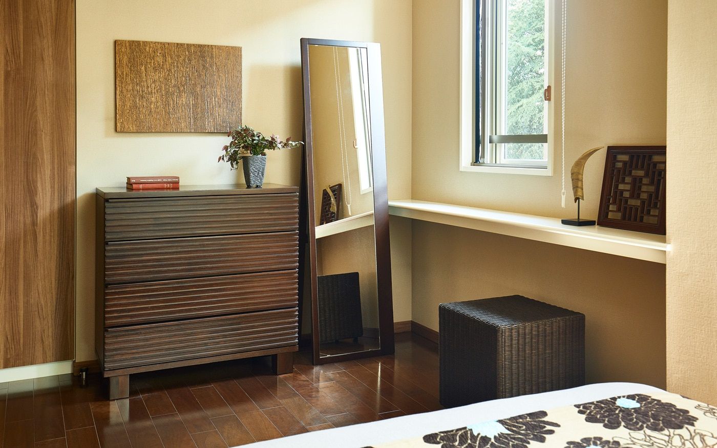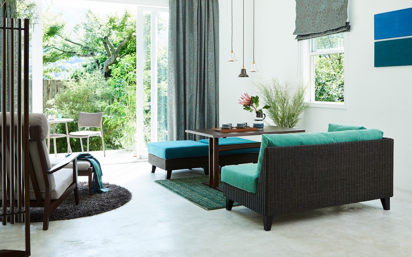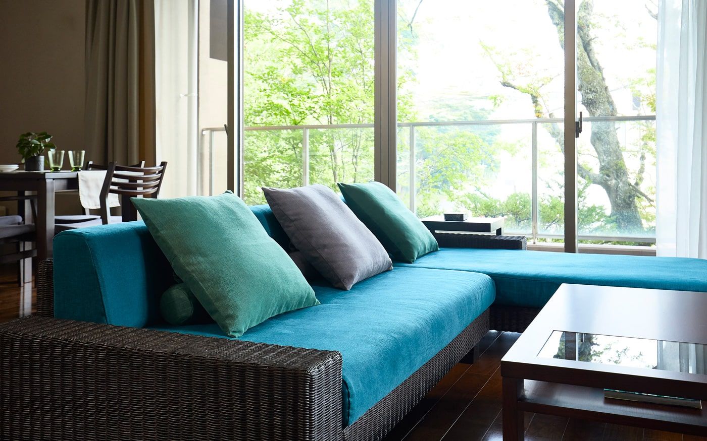 もし、窓から緑豊かな森などが見える場合は、せっかくの景観を活かして家具は低めのタイプを選びましょう。例えば、ローソファ中心にインテリアコーディネートすることで、部屋や窓に抜け感が生まれるため、せっかくの自然な景色を損なわずに楽しむことができます。
