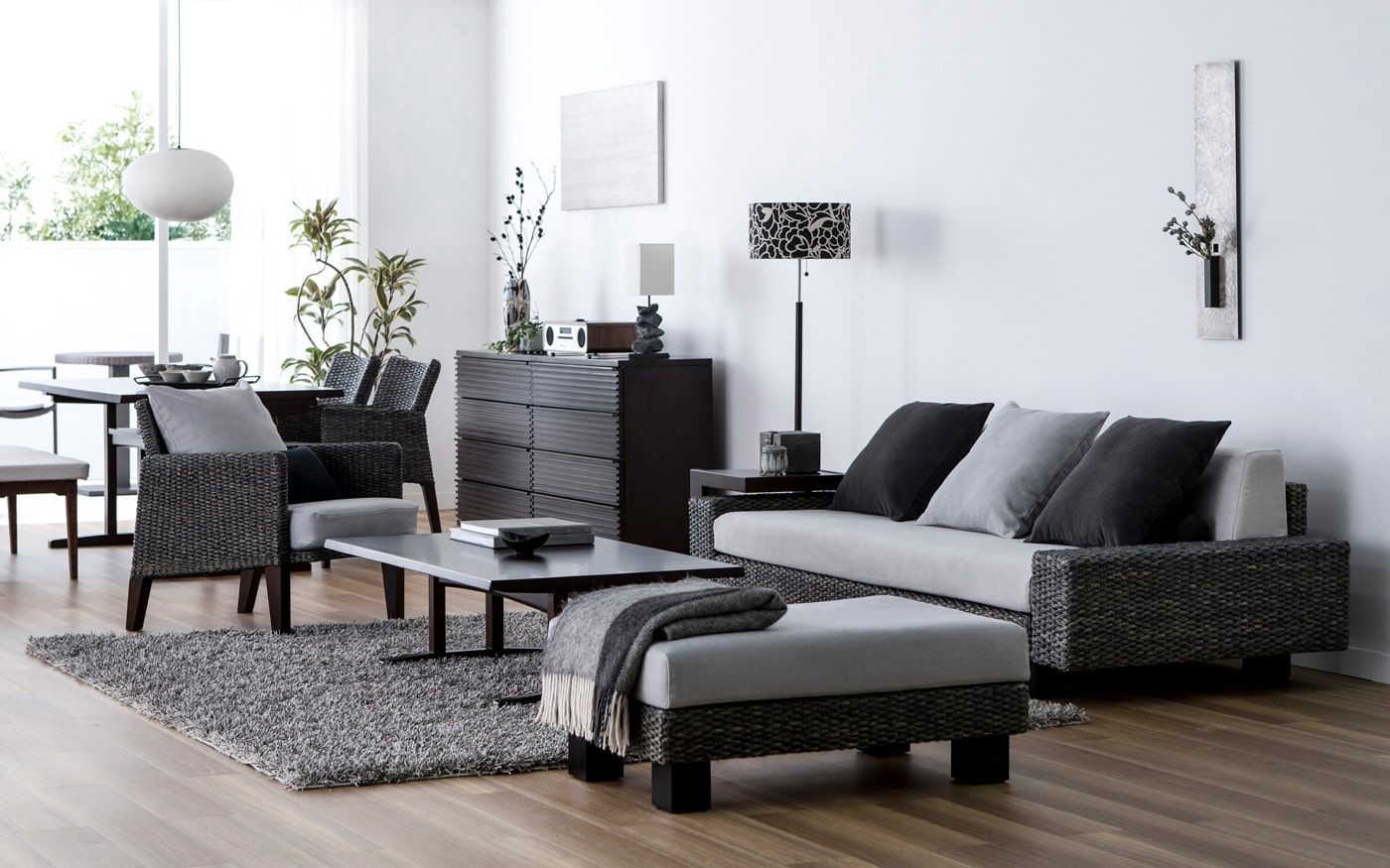 ソファやダイニングチェアに使用されている「ヒヤシンスDG」。ヒヤシンス素材が持つ独特な雰囲気やぬくもりを感じさせてくれる素材感と、ダークグレーが醸し出す上品で高級感漂う雰囲気を兼ね備えています。モノトーンカラーでまとめられた空間とマッチし、シックで気品を感じるお部屋を演出してくれます。