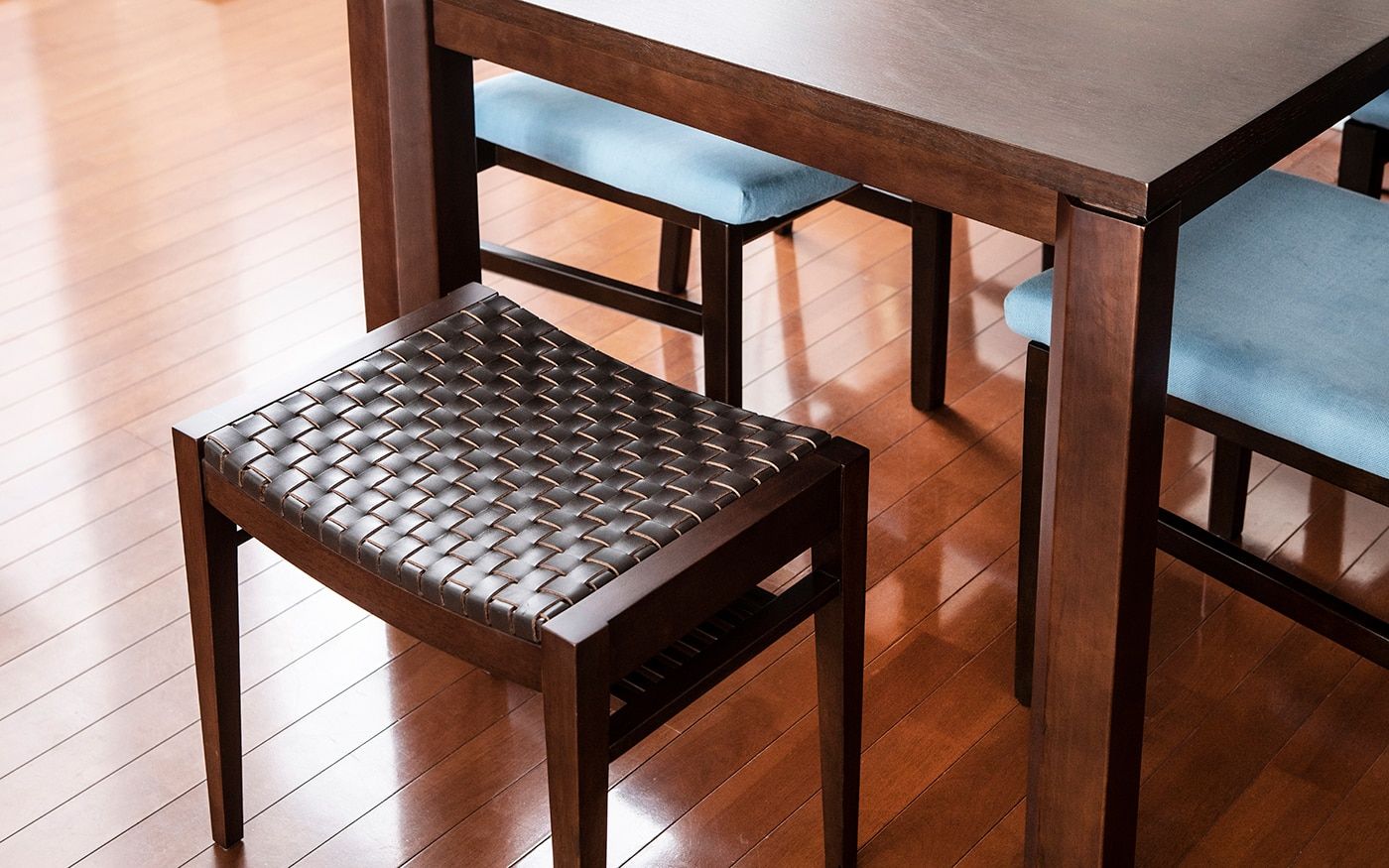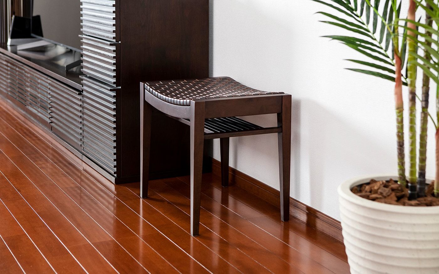 ブラウンでまとめた空間を、より印象的な空間へと変えてくれるのが、家具に使用されている素材です。繊細な編み込みが特徴的なラタン素材は、ブラウンの空間にメリハリを持たせてくれます。落ち着いた雰囲気の中にも、自然素材ならではの、ぬくもりや力強さを感じさせてくれます。