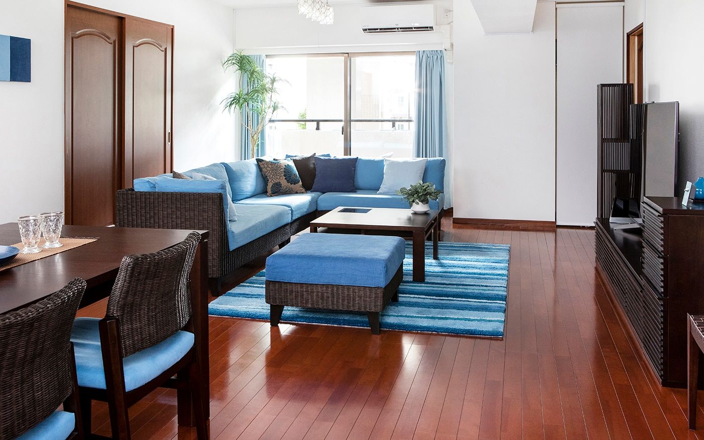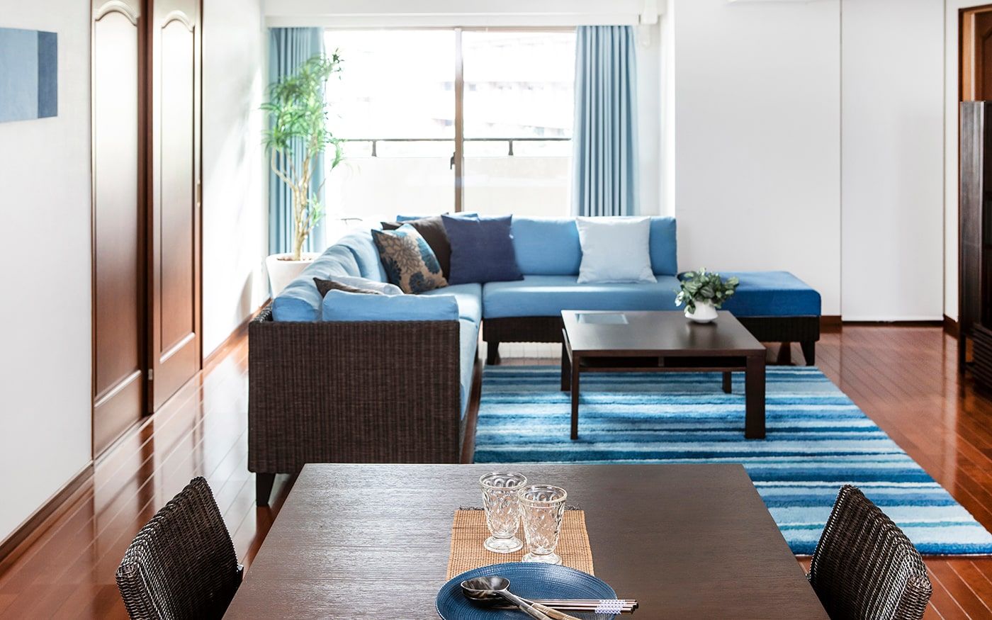 爽やかな海風を運ぶように、リラックスした場を演出するブルー。海と空の青に、白砂のビーチが映えるようなリゾート空間を、暮らしに取り入れましょう。清涼感のある空間で、心地よい暮らしが手に入るはずです。