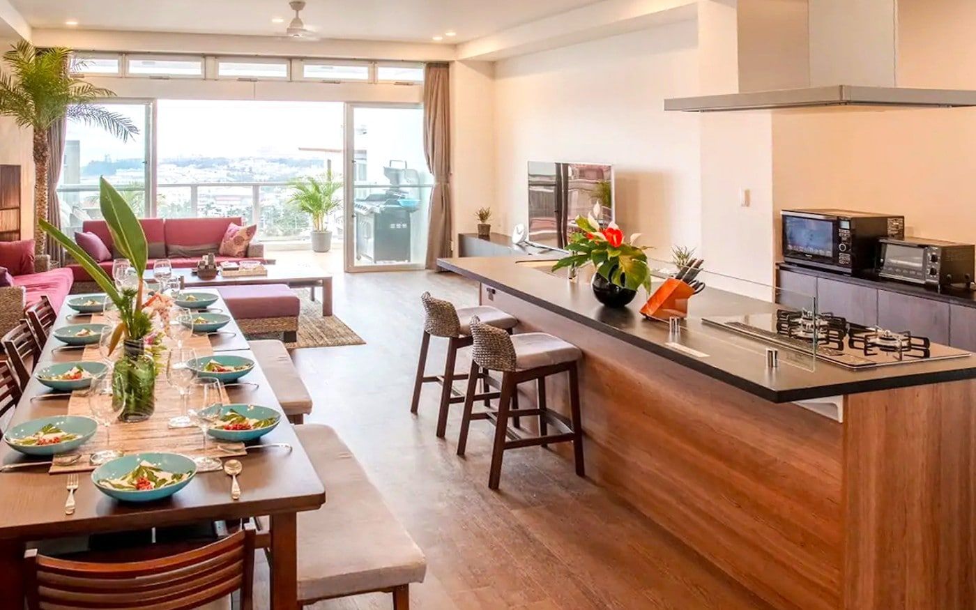 日本のリゾート地の中でも、非日常感を味わえる場所はたくさん有りますが、とりわけ沖縄の魅力は際立っています。海の綺麗さや豊かな自然、悠久の歴史を感じる街並みや城跡など魅力が満載です。そんな沖縄での旅行や暮らしを体験できる、リゾート感溢れる民泊の家具・インテリアをコーディネートさせて頂きました。大勢のゲストが楽しめる民泊コーディネートのポイントをご紹介致します。