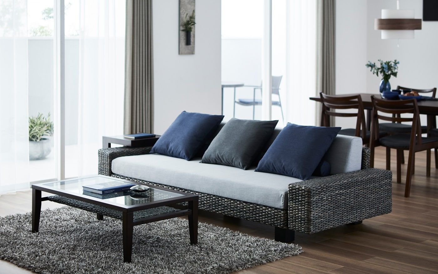 深い色合いのブルーをアクセントカラーにすれば、グレーのシックな空間にほどよく色どりをプラスすることも可能です。深い水の底のような、落ち着いた雰囲気の空間で過ごされたい時にお薦めのカラーコーディネートになります。