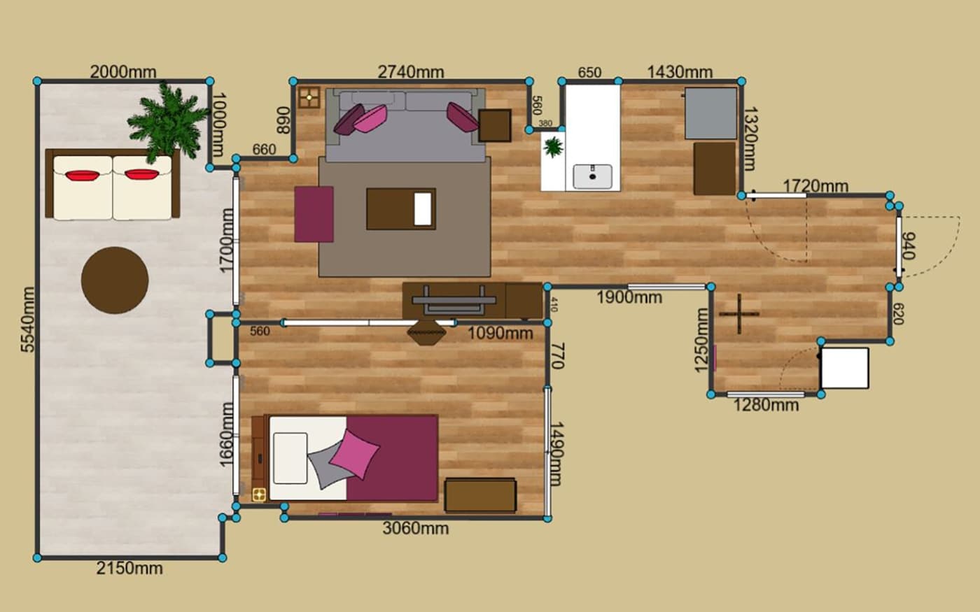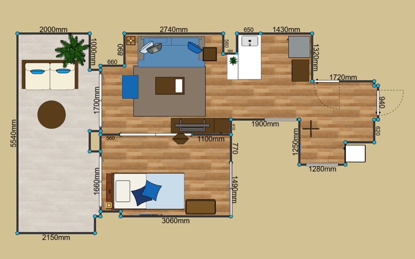 ・間取り:1LDK(LD10畳、寝室5.5畳)