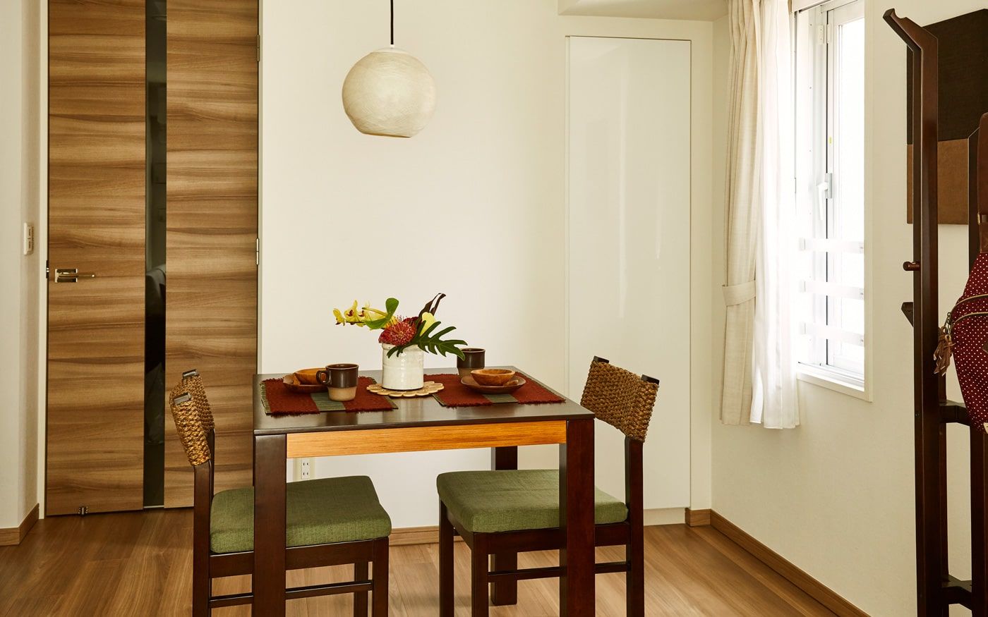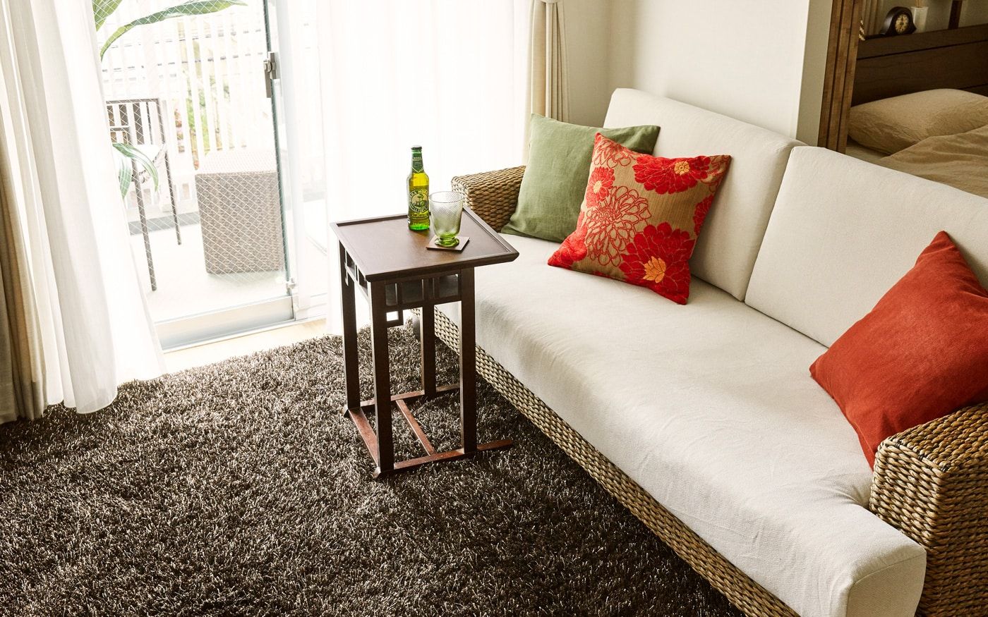 ハワイのようなスローペースな雰囲気を表現するには、開放感のあるレイアウトが欠かせません。今回はローテーブルを配置せずに、サイドテーブルを置いたことでソファ前の空間に抜け感が生まれてスッキリとした印象のリビングづくりに成功されています。