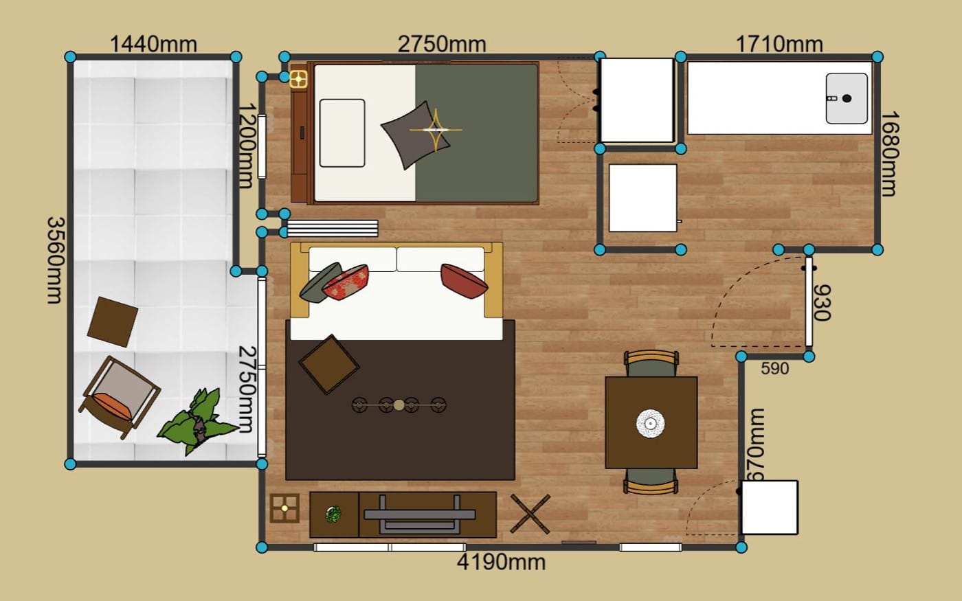 火山活動から生まれたハワイの山々は緑の美しさもあれば、黒々とした岩肌が露出した荒々しさも有ります。また、その広大なロケーションに夕日が落ちれば幻想的な風景も生み出してくれます。そんなハワイの自然を部屋で楽しむため、クッションカバーやラグ、壁面装飾などで表現しました。グリーン、レッド、ブラウンの3色をベースに夕日のような温もりを生む照明を加えて、楽園ハワイのような部屋が完成しています。