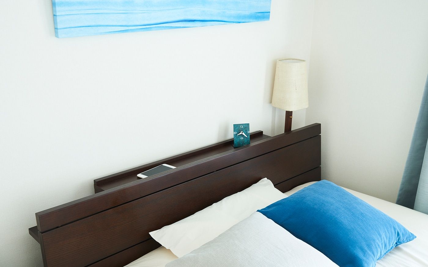 日々の疲れを癒してくれるホテルライクな空間には、上質な家具がポイントになります。ダークブラウンの落ち着きのある雰囲気で高級感を演出してくれるベッドフレーム。収納機能付きのため、ワンルームに収納力をプラスしてくれる機能性もあります。上質な睡眠はその日の疲れを癒してくれるので、マットレスにダブルスプリングタイプでこだわりました。