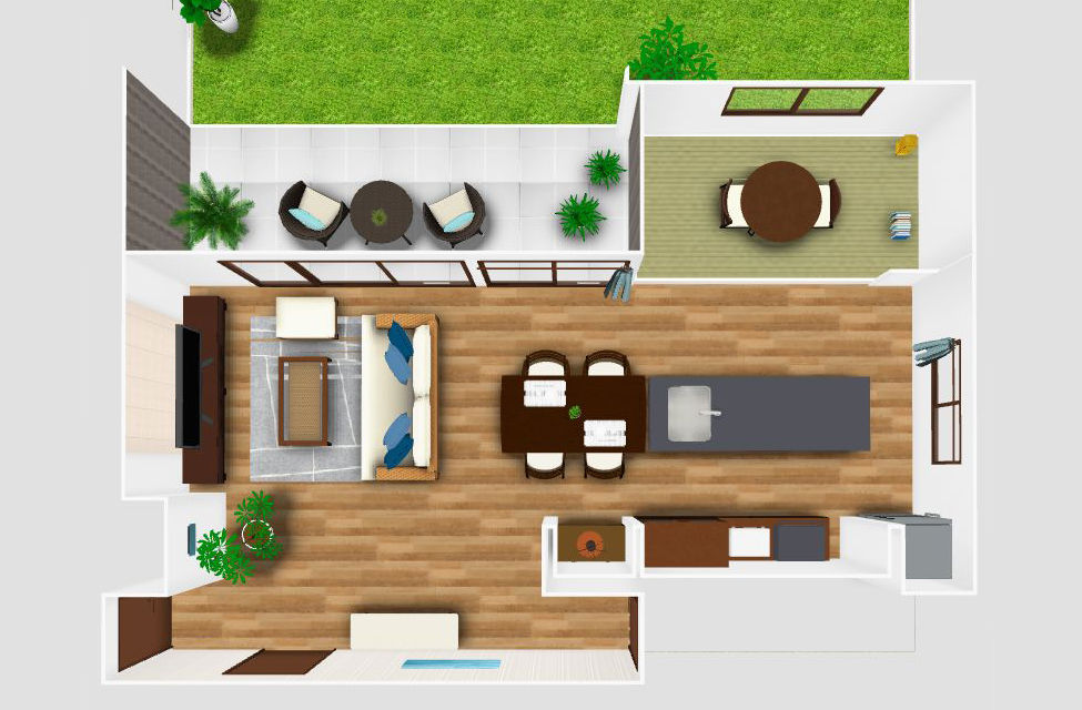 アジアンリゾートのような、開放感を意識した間取りを再現することで、ゆったりと寛ぎの時間を与えてくれます。窓から差し込む光や自然溢れる景色は、自宅に居ながらリゾートの気分を満喫できる、特別な空間に仕上げてくれます。