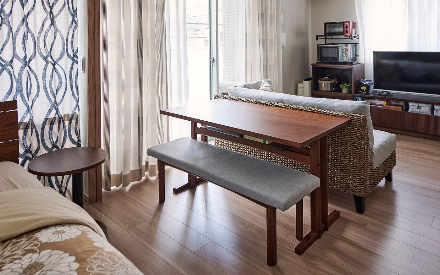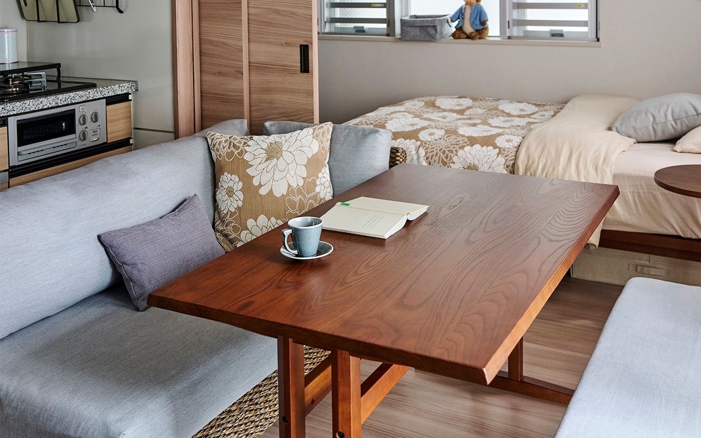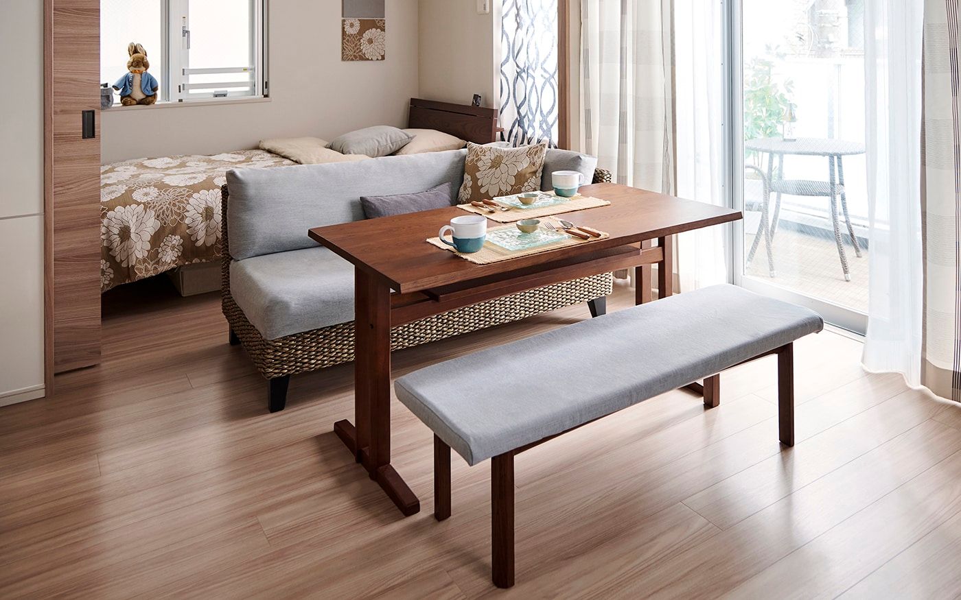 コンパクトな空間でソファダイニングを選ぶ時は、ソファの浅い奥行やテーブルとの高さバランスなどが重要です。間取りやライフスタイルに合わせて、丁度よいサイズの組み合わせを見つけてください。
