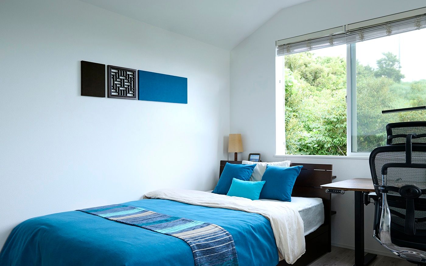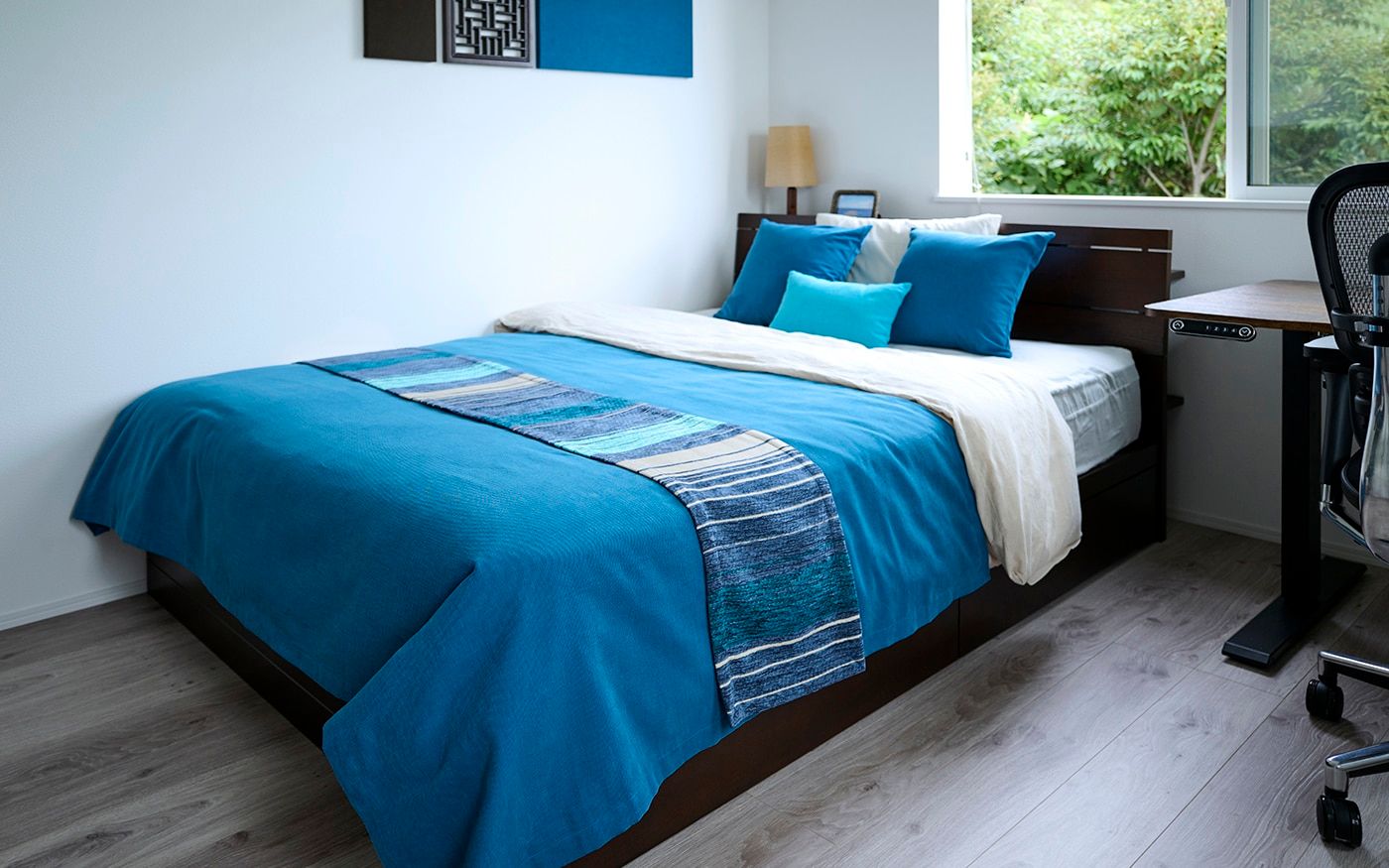 透明感のあるターコイズブルーやエメラルドグリーンが、心と身体に潤いを与えてくれます。非日常感のある色合いに包まれながら、ゆったりと過ごしてみては。沖縄のような透き通る海をイメージした部屋作りを目指してみましょう。